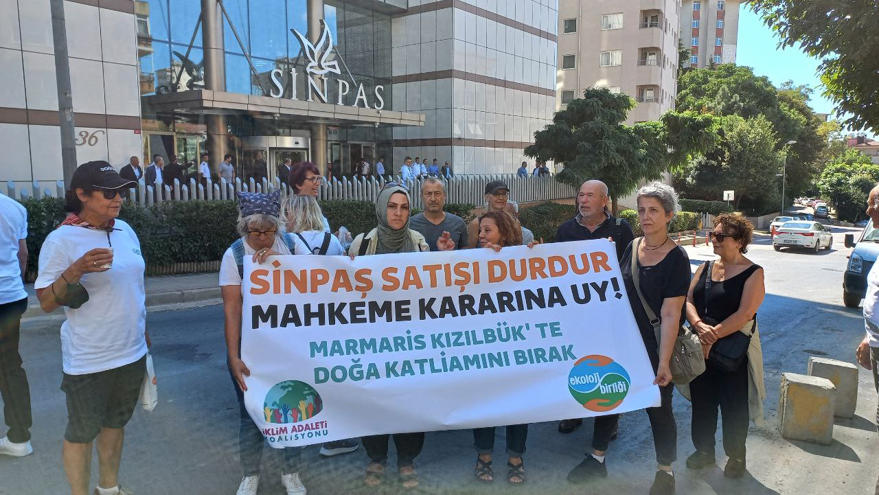 Ekoloji Birliği ve İklim Adaleti Koalisyonu’nun çağrısıyla bir araya gelen yaiam savunucuları, mahkemenin “ÇED gerekli değildir” kararının iptali yönünde verdiği karara rağmen Marmaris Kızılbük’teki devremülk projesini sürdüren Sinpaş’ın Genel Müdürlüğü önünde açıklama yaparak mahkeme kararlarının uygulanmasını ve Sinpaş’ın satış yapmasının durdurulmasını istedi