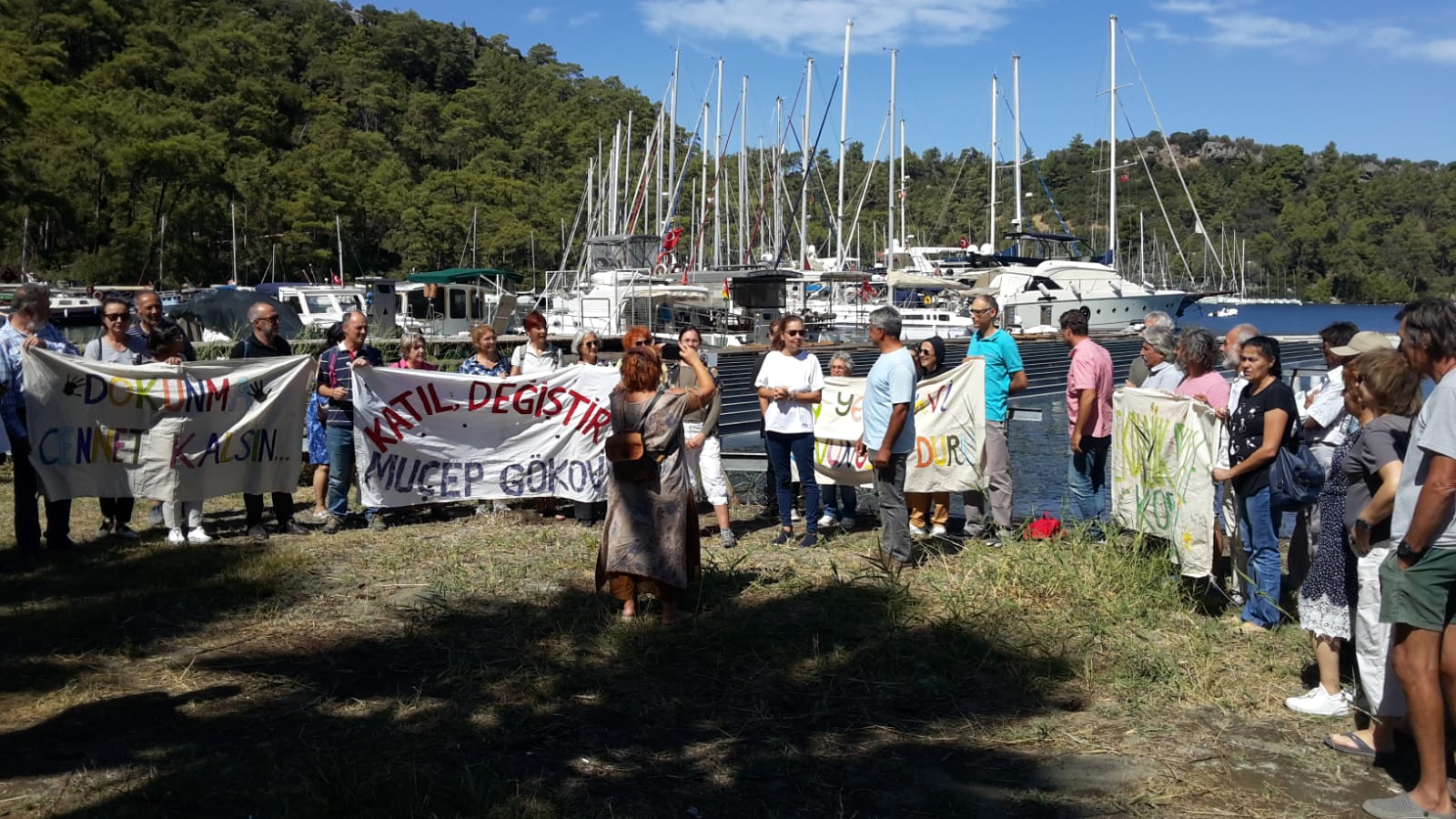 Marmaris’teki Karacasöğüt Koyu’nda MUÇEV’in yat limanı genişletme projesi için yapılacağı duyurulan Halkın Katılım Toplantısı’nın usule aykırı olduğunu belirten yaşam savunucuları toplantıyı yaptırmadı