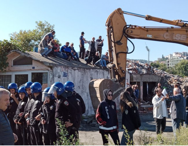 Yıkıma karşı barakaların çatısına çıkan balıkçılar, kepçenin önünde direnişe geçti. Bölgeyi ablukaya alan polisin saldırısına tepki gösteren balıkçılar, “burası bizim teknemiz” diyerek barınaklarını terk etmeyeceklerini söyledi.