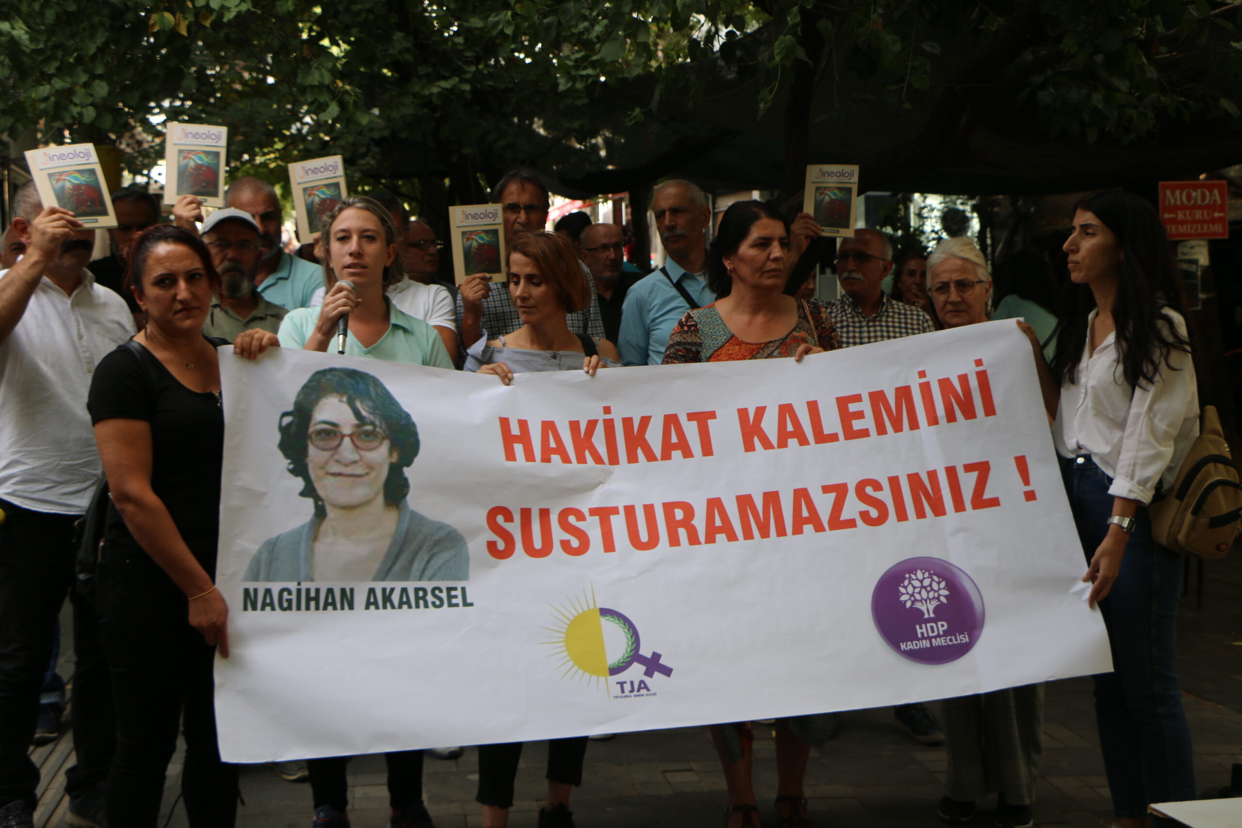 Halkların Demokratik Partisi (HDP) Dersim Kadın Meclisi ve Özgür Kadın Hareketi (TJA-Tevgera Jinên Azad), Nagihan Akarsel’in katledilmesine tepki göstermek için Sanat Sokağı’nda basın açıklaması yaptı. Açıklamayı HDP Dersim İl Eş Başkanı Nazlı Çelik Öz okudu. Açıklamada, “Hakikat kalemini susturamazsınız” pankartı açıldı.