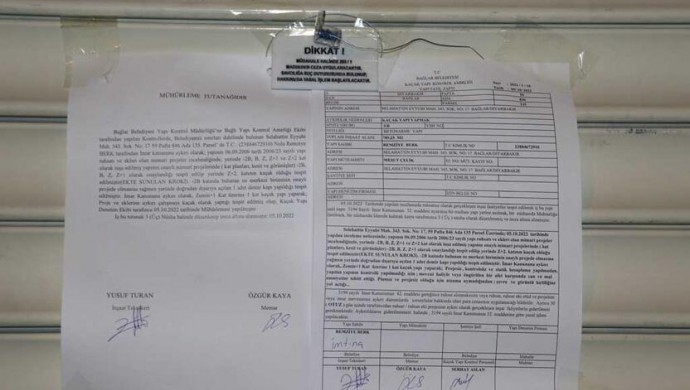 Bağlar Belediyesi ekiplerinin, binada zemin artı 2’nci katın fazla olduğu, yine projede olmayan bir dış kapının bulunduğu ileri sürerek 30 gün içerisinde ruhsat eki projesine aykırı olan inşai faaliyetlerin giderilmesi istendi. Yine tutanakta faaliyetlerin 30 gün içinde gerçekleşmemesi halinde 3194 sayılı kanunun 32’nci maddesine göre yasal işlem yapılacağı ifade edildi.