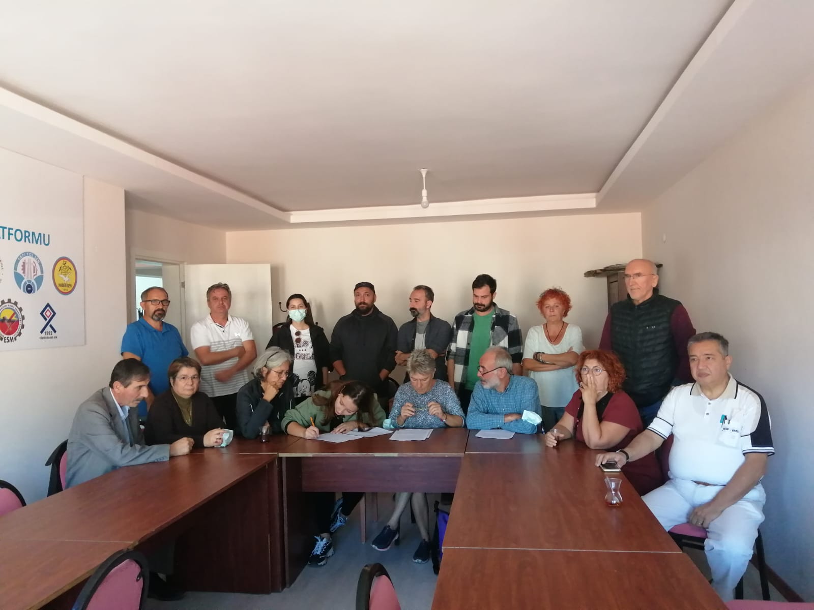 Muğla’da ekoloji ve meslek örgütleri, 6 Kasım’da ekolojik yıkıma karşı düzenleyecekleri miting öncesinde KESK Şubeler Platformu binasında açıklama yaptı.
