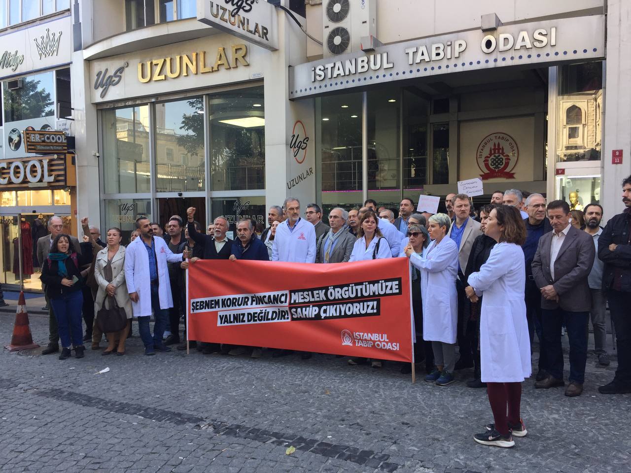 İstanbul Tabip Odası, Türk Tabipleri Birliği (TTB) Merkez Konseyi Başkanı Şebnem Korur Fincancı’nın gözaltına alınması ve sonrasında TTB’ye yönelik artan saldırılara dair Cağaloğlu’ndaki binasında basın açıklaması yaptı.
