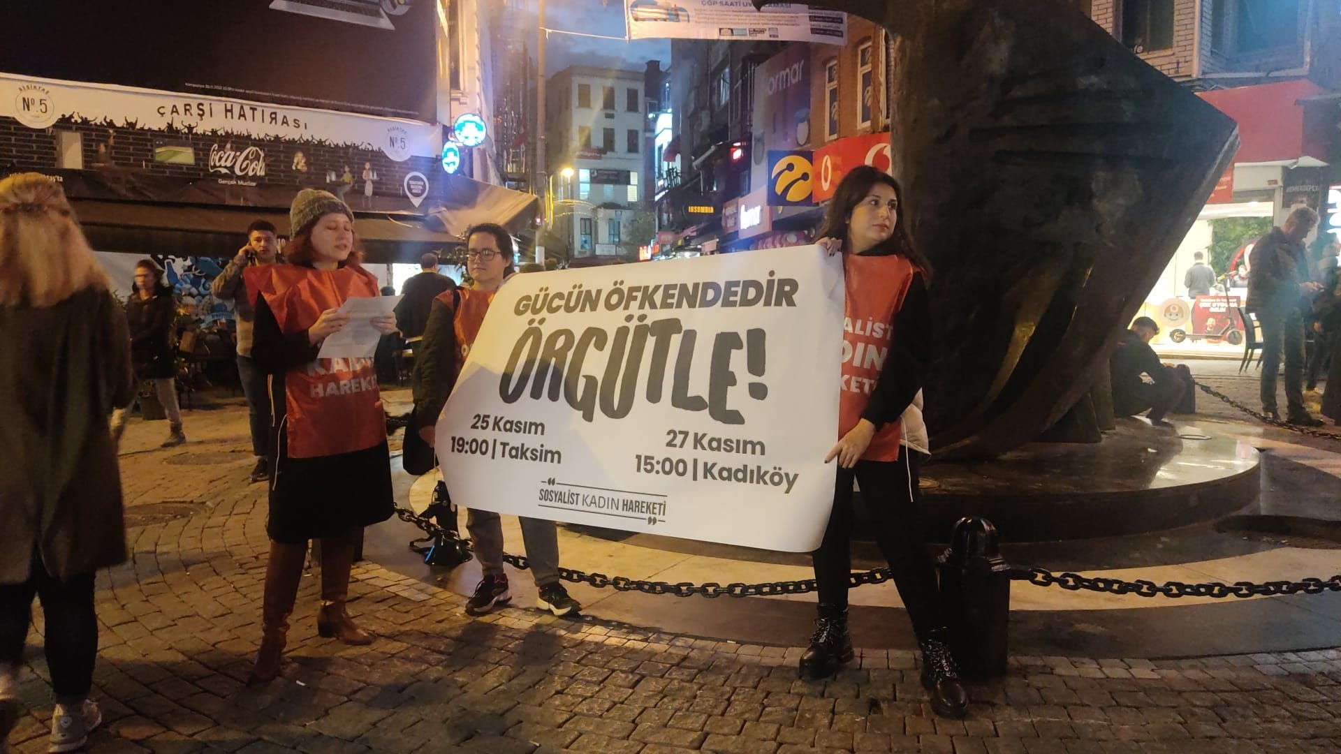 Beşiktaş’ta 25 Kasım’a çağrı eylemi yapan Sosyalist Kadın Hareketi üyesi 4 kadın eylem sonrasında gözaltına alındı.