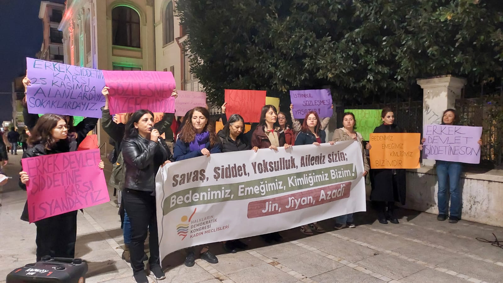 HDK Kadın Meclisi, 25 Kasım Kadına Yönelik Şiddete Karşı Uluslararası Mücadele Günü öncesinde Kadıköy Süreyya Operası önünde açıklama yaptı. HDP bileşeni kadın örgütlerinin temsilcilerinin katıldığı eylemde kadınlar “Savaş, şiddet, yoksulluk, aileniz sizin; bedenimiz, emeğimiz, kimliğimiz bizim” dedi.