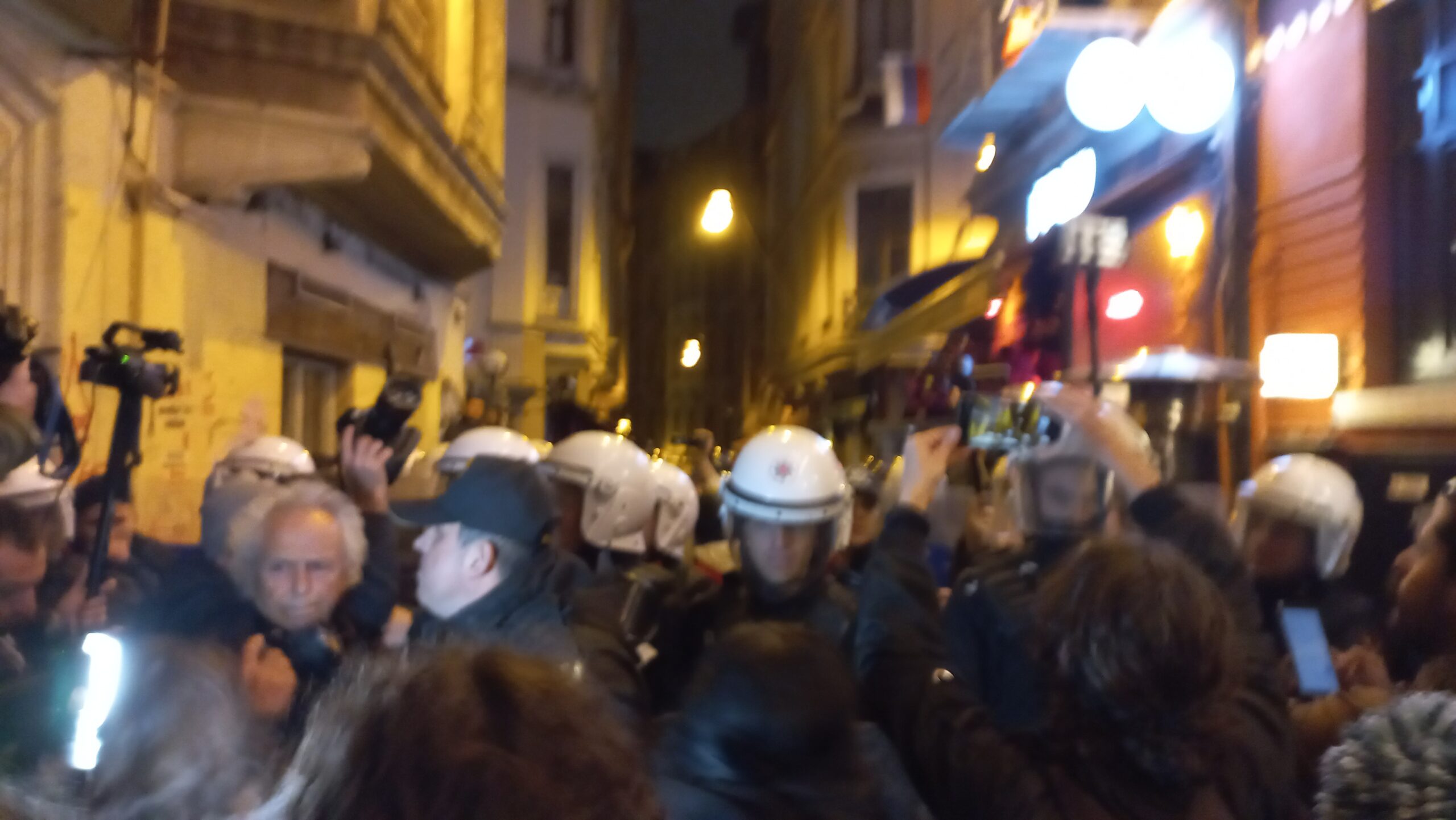19.05: Şişhane’ye gözaltı aracı getirildi. Polis gazetecileri ve yoldan geçmek isteyen yurttaşları engelliyor.
