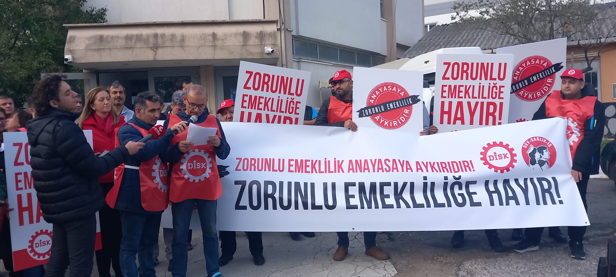 Devrimci Sağlık İşçileri Sendikası (Dev Sağlık-İş) yurdun dört bir yanında hastanelerdeki işçilerle, zorunlu emeklilik dayatmasına karşı eylemdeydi