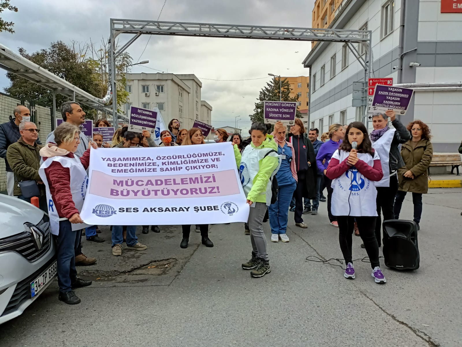 İstanbul SES Aksaray Şubesi’nden kadınlar Cerrahpaşa Hastanesi’nde 25 Kasım Kadına Yönelik Şiddete Karşı Uluslararası Mücadele Günü dolayısıyla bir açıklama yaptı.