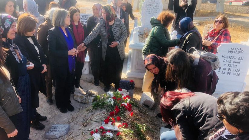 Ablukaya karşı kadınlar, Nagihan Akarsel’in en sevdiği çiçekler olan papatya ve kırmızı karanfiller ile mor bir şalı Nagihan Akarsel’in mezarına bıraktı.