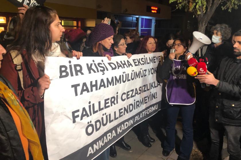 Ankara Kadın Platformu koruma kararı olmasına rağmen eski kocası Mehmet Eroğlu tarafından silahlı saldırıya uğrayan kadın için saldırının gerçekleştiği Hoşdere Caddesi’nde eylemdeydi