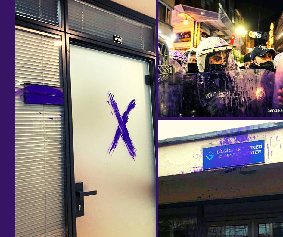 Üniversite yönetiminin tacizci akademisyene dair hiçbir tepki göstermemesinin üzerine, üniversiteli kadınlar tacizci akademisyenin kapısını ve isimliğini mora boyadı. Hemen ardından kadınlar, tacizcinin ders vereceğini düşündüğü amfide ‘Bülent Arı tacizcidir!’ yazılı pankartla yaşanılanları teşhir etti. Olayın üzerinden 2 saat geçmeden fakülte yönetimi ‘Basında çıkan haberler üzerine…’ girişli bir açıklamayla tacizci akademisyenin görevinden geçici olarak uzaklaştırıldığını açıkladı. İstanbul Üniversitesi’nin hemen ardından Boğaziçi Üniversitesi’nde bilgisayar teknikerliği iş ilanına kriter olarak erkek olmayı şart koşan kayyum yönetimine cevap kadınlar tarafından yine mor boyayla verildi. Kayyummluk erkek olma şartını birçok iş ilanına ekleyerek ayrımcı uygulamalarına bir yenisini ekledi.