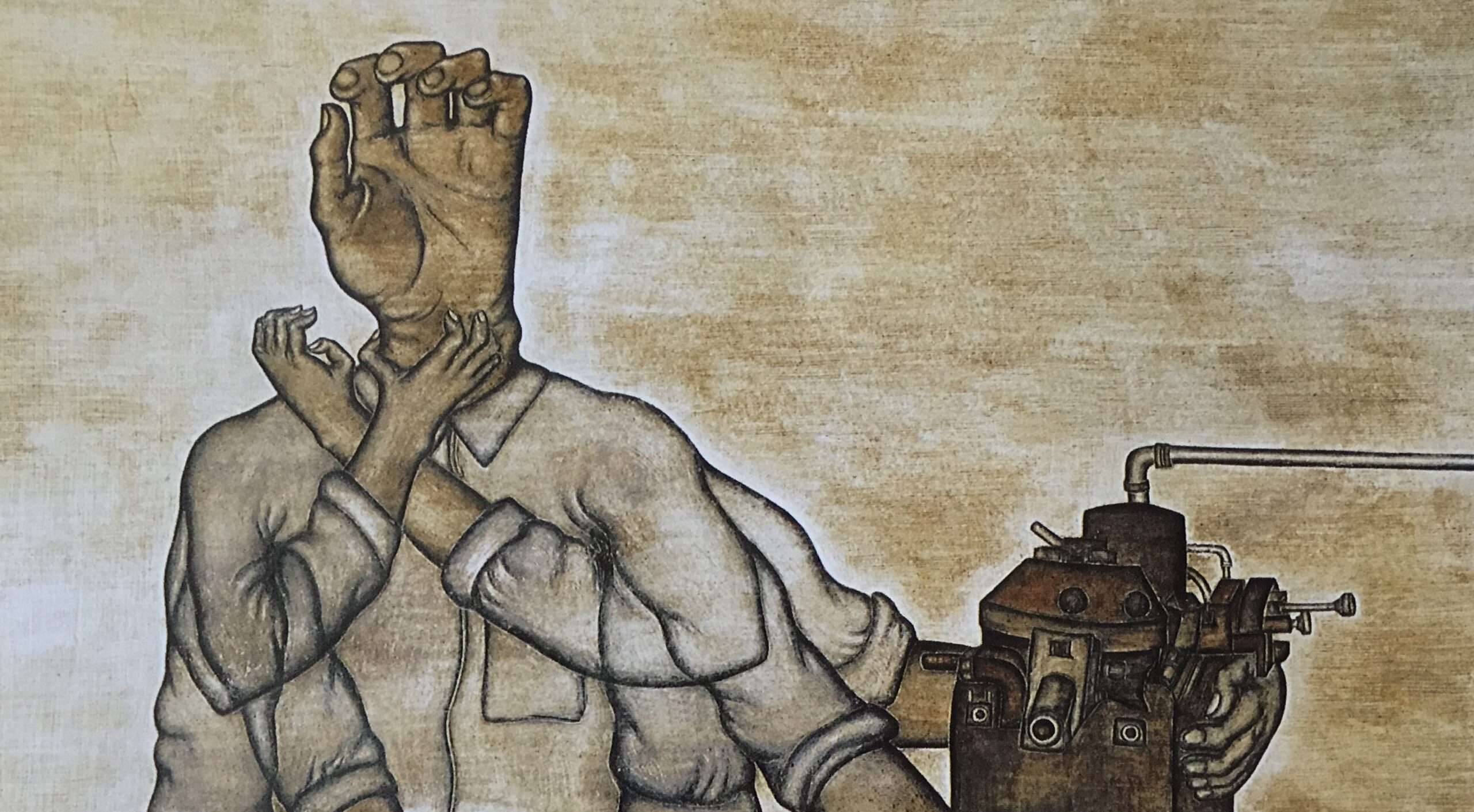 Thomas Bernhard’ın “Olaylar”[1] kitabındaki bir öykü, işçileri her koşulda üretime devam etmesi gereken ruhsuz birer makine derekesine indirgerken toplumun genelini de kayıtsızlığa ve eylemsizliğe sürükleyen bu yabancılaşma döngüsünü tasvir eder. Giyotine benzeyen bir makine, yavaş yavaş akan bir plastik kütleden büyük parçalar kesmekte, bu kesilmiş parçaları kontrol eden ve onları büyükçe bir kartonla saran kadın işçilerin oturduğu hareketli şeride düşürmektedir. İşçilerden birisi yanlışlıkla makinenin içine düşer ve başı kopar. Kadının kesik başı, kopan plastik parçaları gibi akan şeride inerken, diğer işçiler kapıldıkları dehşet nedeniyle bağıramazlar ve çalışma rutinine uygun bir şekilde, başı alıp bir kartona yerleştirirler. Üretim bandı akmaya, işçiler “şok” doktrini eşliğinde çalışmaya devam eder.