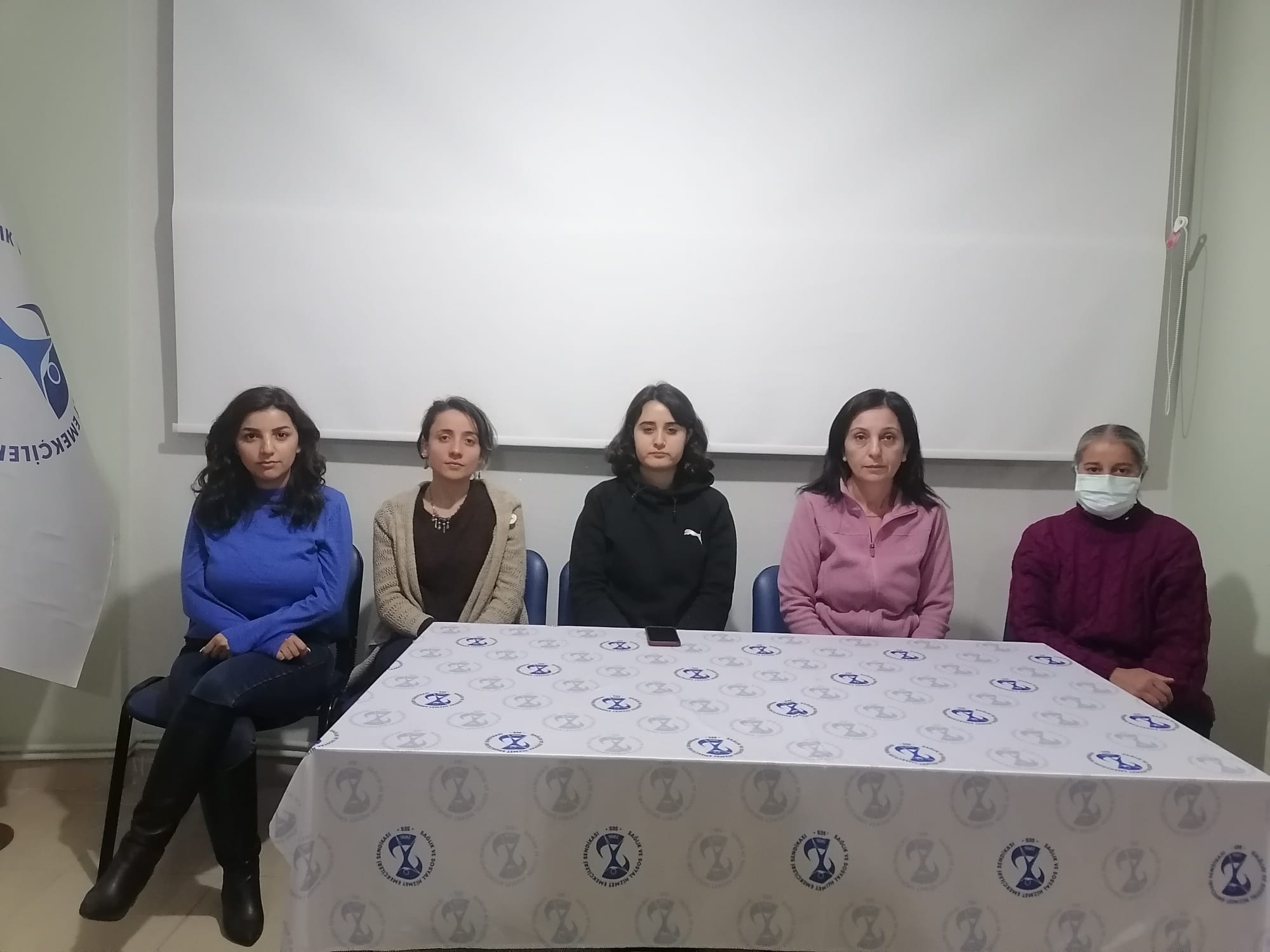Hatay SES şubesinde bugün (31 Ocak) Kadınlar Birlikte Güçlü, bir mali müşavirin yanında çalışan kadınların yaşadığı tacizle ilgili basın toplantısı yaptı.