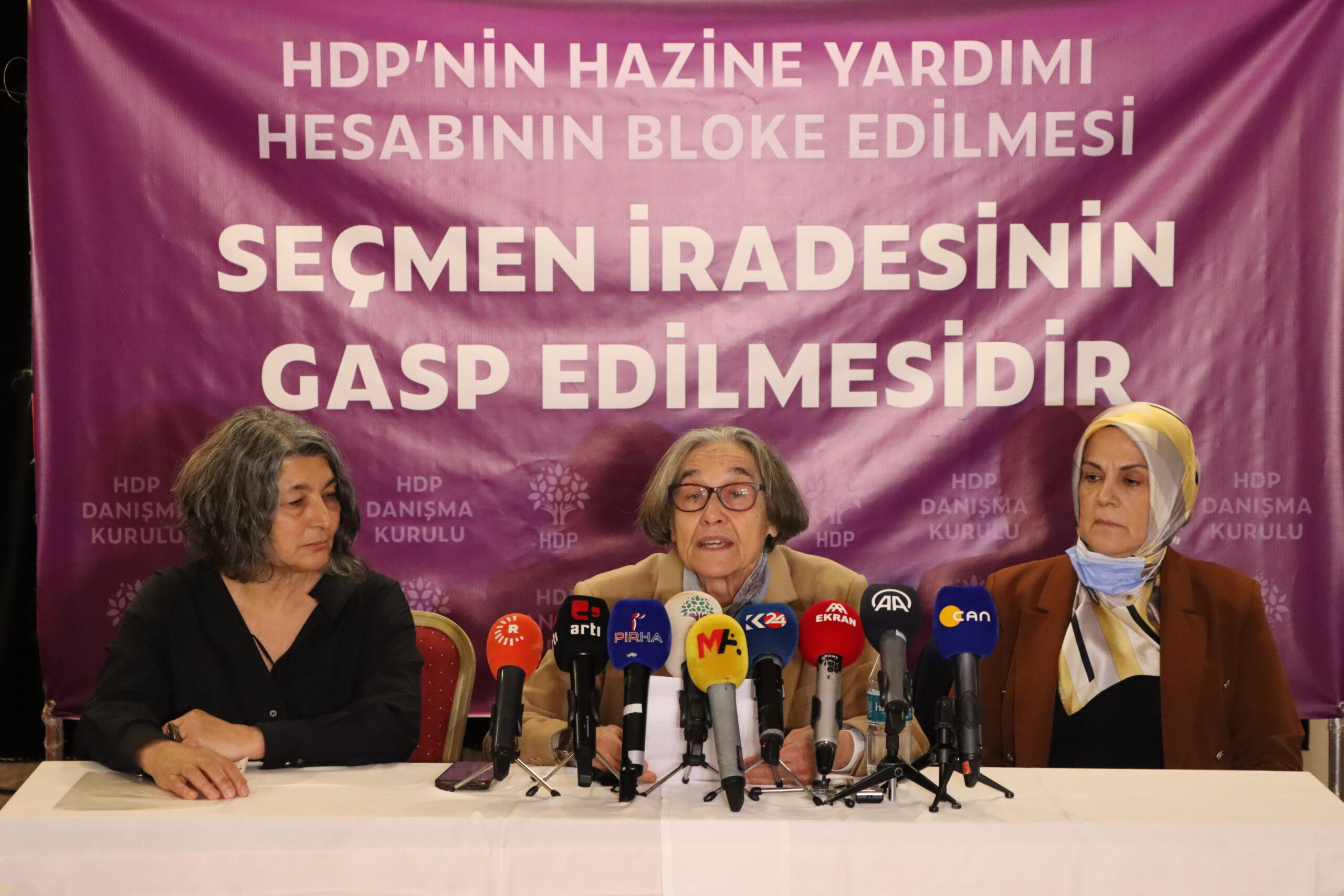 HDP Danışma Kurulu, Anayasa Mahkemesi kararıyla HDP’nin hazine yardımı hesabına bloke konulmasına ilişkin İstanbul’da basın toplantısı düzenledi.