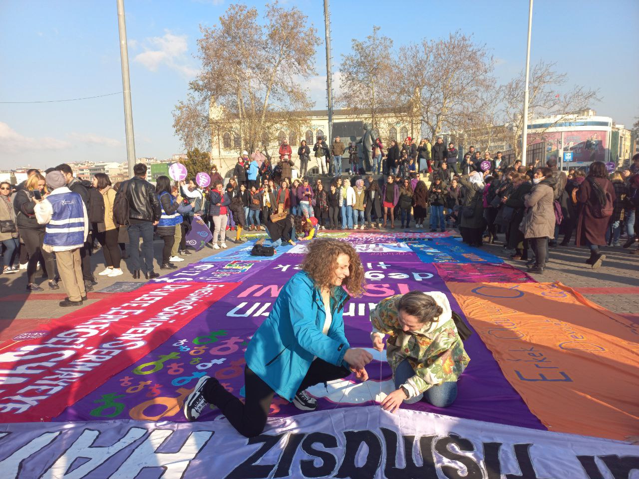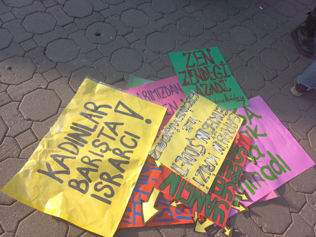 Çeşitli mahallelerde kadınlardan toplanan talepler meydanda okundu. Taleplerin yazıldığı parça parça pankartlar alanda birbirine dikildi.