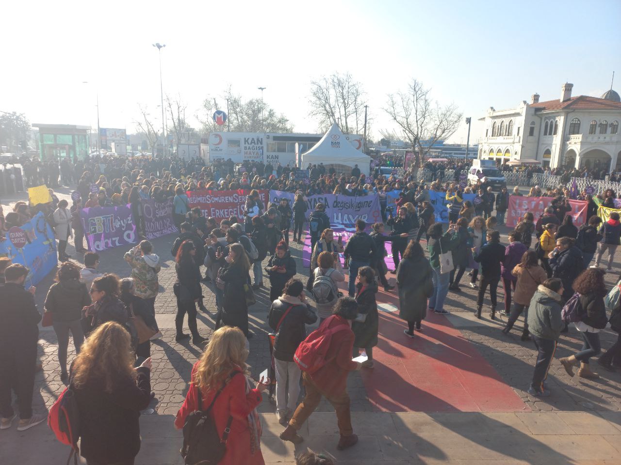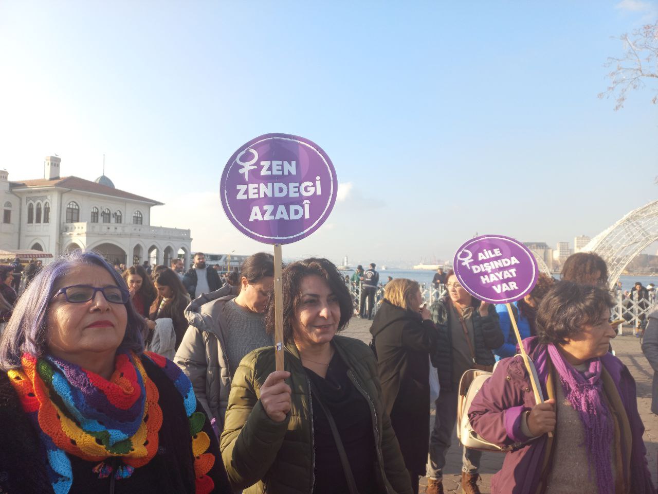 “Kadınların isyanı değiştirecek” diyerek mahalle mahalle çağrıda bulunan Kadınlar Birlikte Güçlü, bugün (8 Ocak) Kadıköy’de bulunan Beşiktaş İskelesi önünde bir araya geldi.