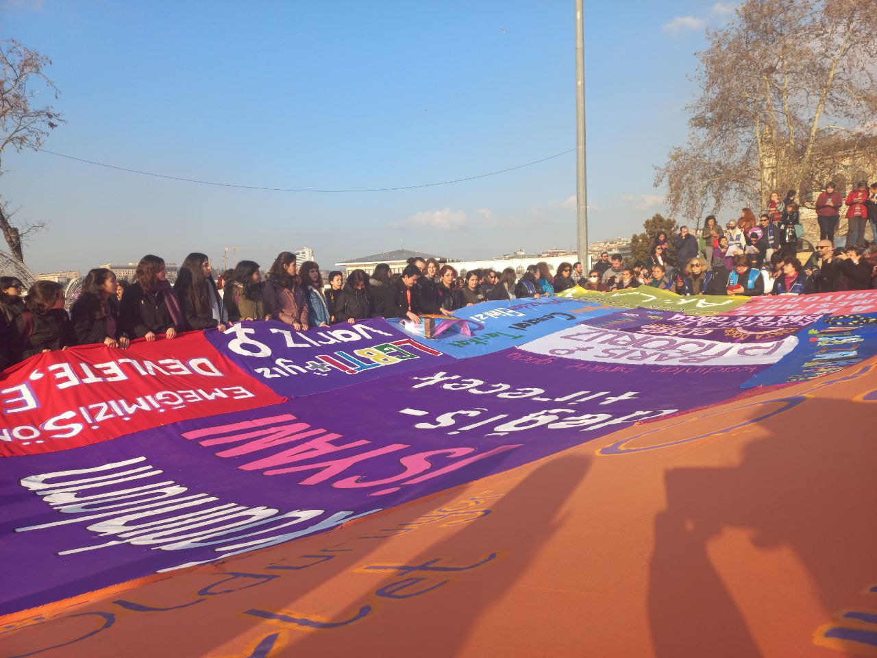 “Biz kadınlar, lgbti+lar her gün şiddete uğradığımız, yaşamak için mücadele verdiğimiz koşullarda 2023’e girerken Danıştay ne yaptı? İstanbul Sözleşmesi’nden çıkış kararını onadı. Her gün şiddete uğradığımız, öldürüldüğümüz bu ülkede tek adamın bir gece yarısı İstanbul Sözleşmesi’nden çıkarak hayatlarımıza kast etmesini de, çıkış kararını onayan suç ortağı Danıştay’ın kararını da tanımıyoruz. Kadınların, lubunyaların hayatlarının seçim pazarlığı haline getirilmesini kabul etmiyoruz. Sadece yönetenlere değil yönetmeye talip olanlara da söylüyoruz: İstanbul Sözleşmesi’nden, haklarımızdan, hayatlarımızdan vazgeçmiyoruz. İstanbul Sözleşmesi biziz” diyen kadınlar “Haklarımızdan, hayatlarımızdan, eşitlikten, özgürlüğümüzden, arzularımızdan, kimliklerimizden, mücadelemizden, İstanbul Sözleşmesi’nden vazgeçmiyoruz!” diyerek ses çıkarttı.