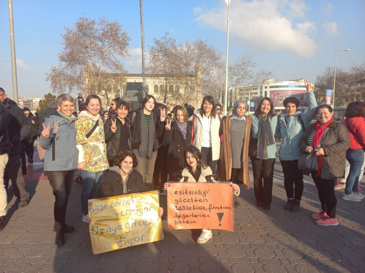 Kadınlar “Bu ülkenin dört bir yanında aile yürüyüşleri adı altında nefret yürüyüşleri düzenlendi. Nefretin örgütlenmesinin önüne barikatlar çekmeyen, tam tersi ayrımcılığı destekleyen, ayrımcılığın, nefretin önünü açan devlet ve onun uygulayıcısı olan kolluk; 2022’de de bedenlerimiz, haklarımız, hayatlarımız için mücadele eden, sokakları dolduran biz kadın ve LGBTİ+ların önüne barikat çekti, bizleri gözaltına aldı” diyerek ses çıkarttı.