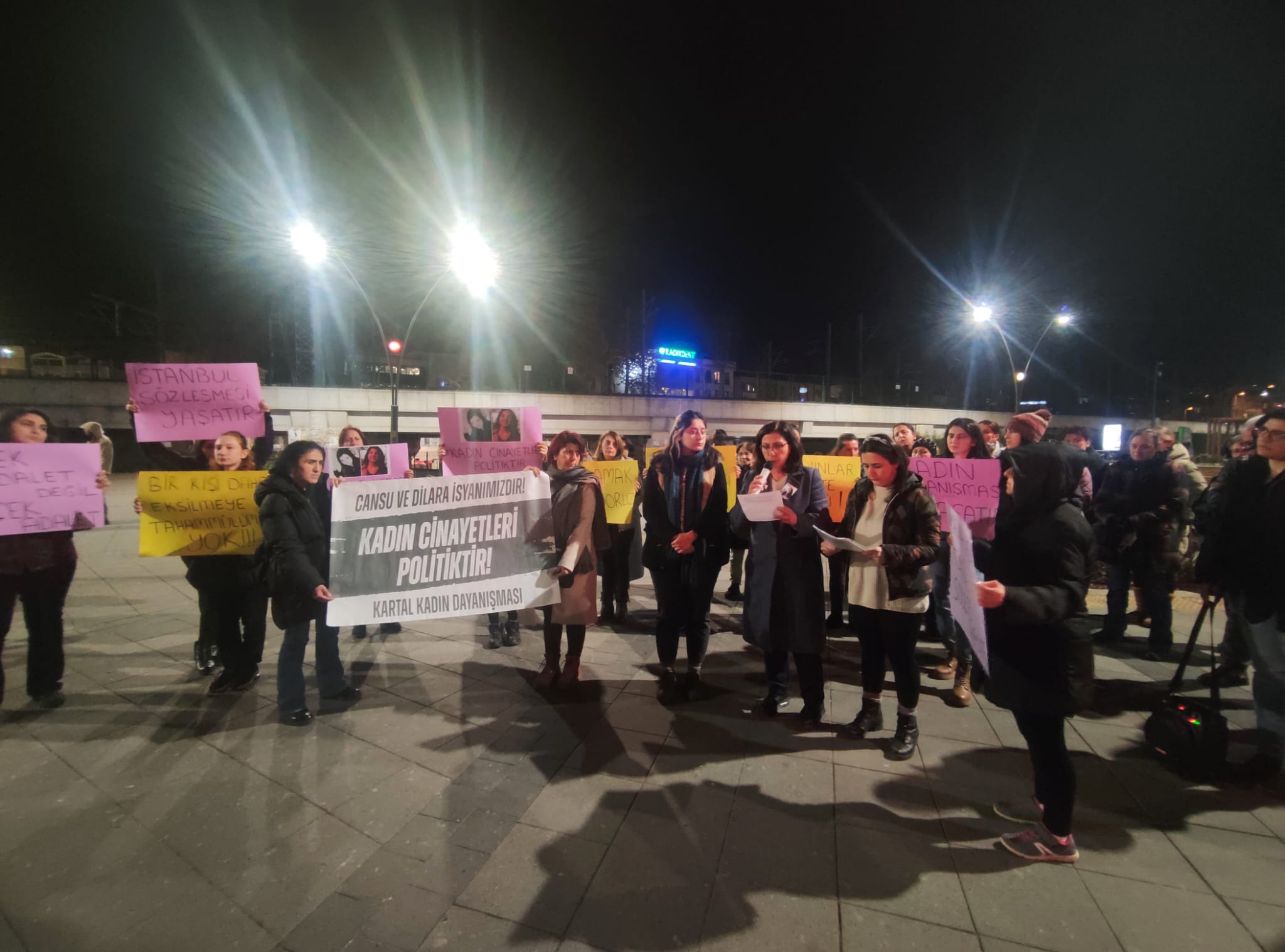Kartal Kadın Dayanışması, kayıp olarak aranan Dilara Gültay ve Cansu Demirel’in bir evde ölü bulunması ve bileklerini keserek intihar girişiminde bulunan Mustafa Payan’ın daha önceden ”Kasten yaralama” suçundan sabıkası olduğunun öğrenilmesi üzerine eylemde bir araya geldi.