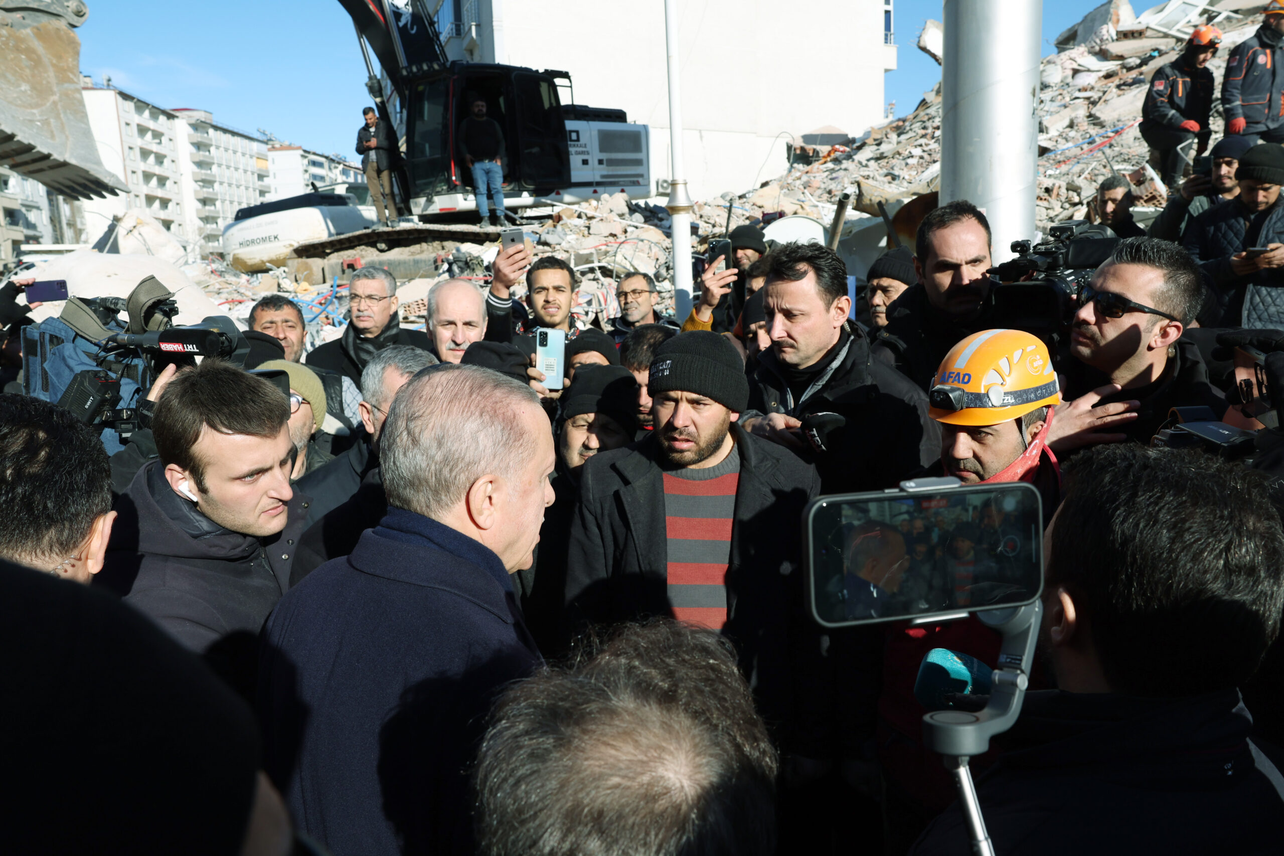Tayyip Erdoğan deprem bölgesindeki ziyaretleri kapsamında depremin merkez üssü Maraş Pazarcık’a gitti. Pazarcık’ta bir depremzedeyle görüşen Erdoğan, depremzedeye “Bunlar kader planının içerisinde olan şeyler” dedi.