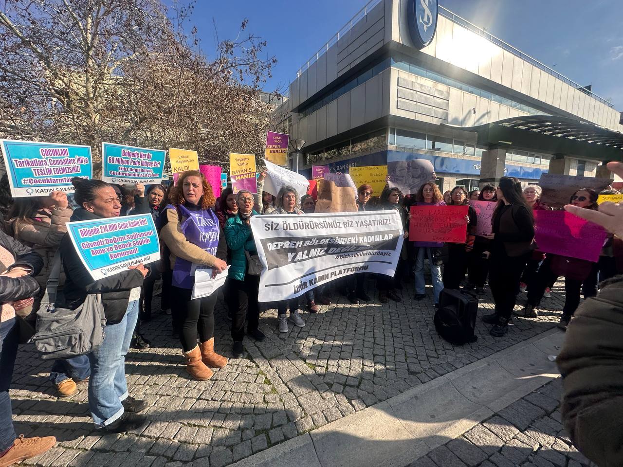 İzmir Kadın Platformu, deprem bölgesindeki kadınlarla dayanışma için eylemdeydi