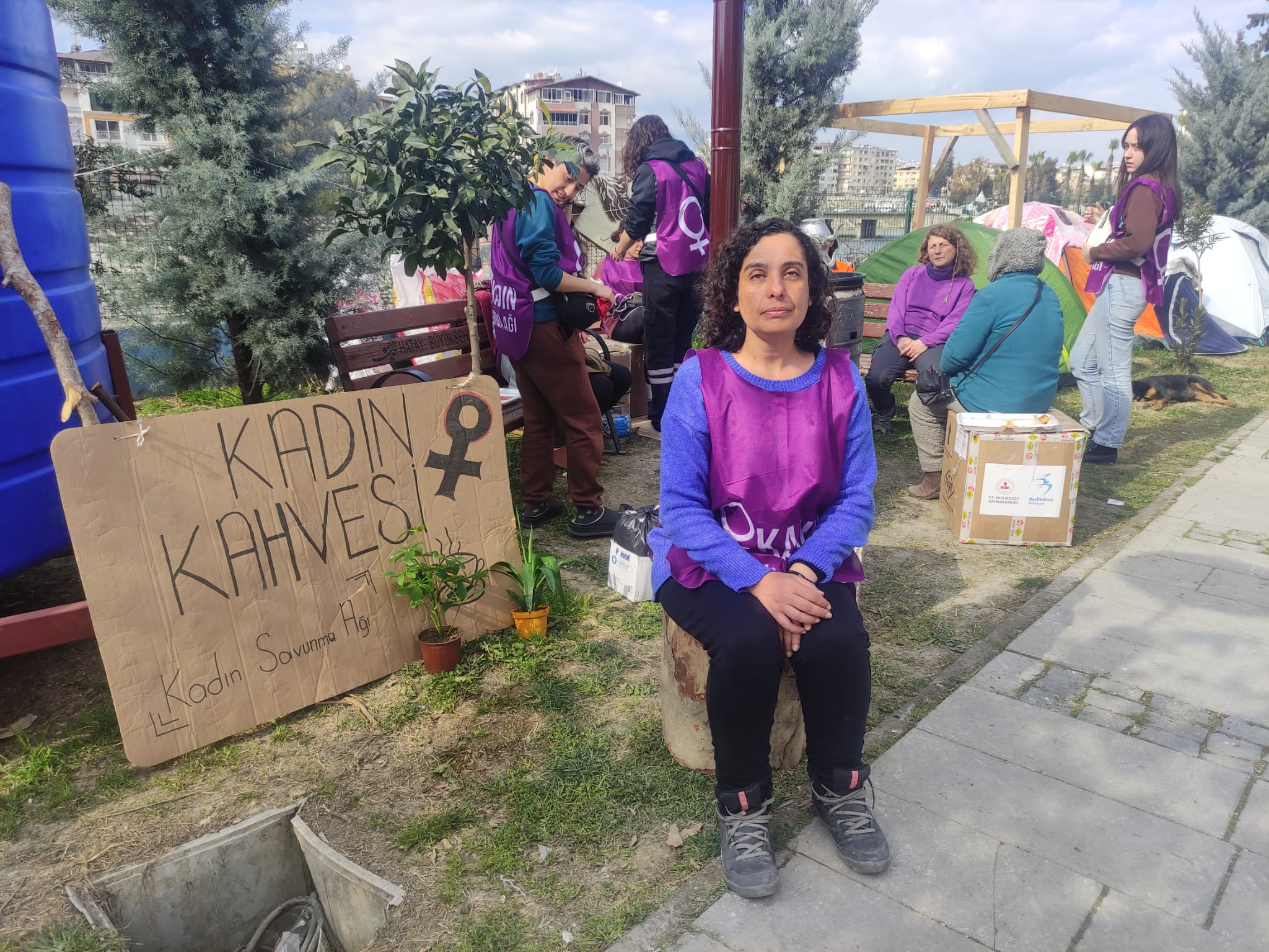 Burada kadınların neler yaşadığından ve dayanışma noktasını kurduğumuz günden itibaren gözlemlerimizden bahsetmemiz lazım. Bugün depremin 13. günündeyiz. Depremde kadınlar neler yaşıyor? Bugüne kadar bütün afetlerde gördük ki toplumsal cinsiyet eşitsizliğinden dolayı kadınlar ayrıca pek çok zorlukla karşı karşıya kalıyorlar. Antakya’da yaşadıkları en büyük zorluklardan biri hijyen problemi idi. Depremin 13. gününe gelmiş olmamıza rağmen kentte birçok yerde elektrik ve su yok. İnsanlar tuvalet ihtiyacını karşılayamıyor, temiz suya ulaşamıyor. Kadınlar hijyen konusunda, pede ve kiloda ulaşımda zorluklar yaşadı. bunu yanında, depremden sonra hayatta kalma mücadelesinde bütün aile bireylerinin hayatta kalma mücadelesini burada kadınlar veriyor ne yazık ki. Çocukların bu koşullar, bu kadar enkazın yıkımın arasında çocukların bakımı, hijyen malzemesi bulma, yemek bulma gibi bütün sorumluluklar kadınların üzerine yıkılmış durumda. kentte pek çok dayanışma noktası var. bu noktalara baktığımızda, erkeklerin buraya geliş biçimleri ile kadınların geliş biçimleri değişiyor, farklılıklar gösteriyor. Erkekler biraz rahatlamak için, bir kahvehaneye gelir gibi dayanışma noktalarını kullanırken kadınlar bir ihtiyacı karşılamak üzere, herhangi bir ihtiyacı bulmak üzere geliyorlar. Çocukların ihtiyaçlarını, hatta erkeklerin, eşlerinin ihtiyaçlarını da gidermek için bu dayanışma noktalarına geldikleri bir durum var. enkazın yükü iki kat üç kadar dört kat belki de kadınların üzerine yıkılmış durumda.