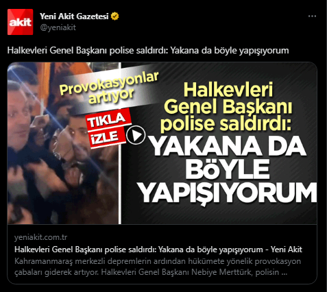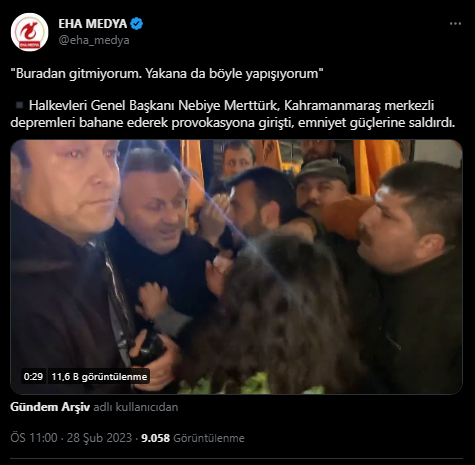Halkevleri’nin Hatay Defne’de dayanışma noktalarının tahliye edilmek istenmesine karşı Ankara’da yapmak istediği eyleme polisin saldırmıştı. Trol medyası polis eylemin ardından 23 gündür deprem bölgesinde dayanışma faaliyetleri yürüten Halkevleri’ni ve Halkevleri Genel Başkanı Nebiye Merttürk’ü hedef gösterdi