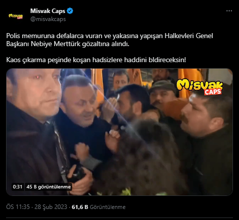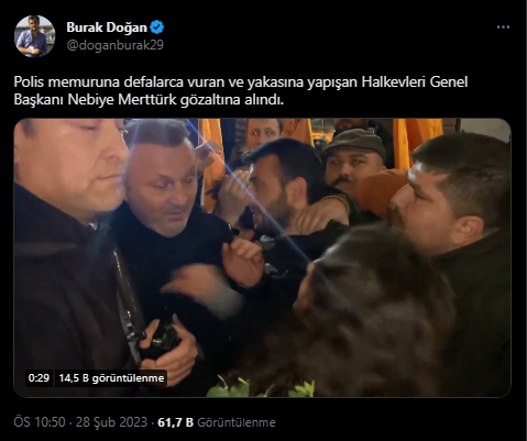 Halkevleri Genel Merkezi’nin önüne barikat kuran polislere “Biz orada 23 gündür dayanışmayı örenleriz, önümüzde durmayın!” diye seslenen ve geri adım atmayacaklarını söyleyen Halkevleri Genel Başkanı Nebiye Merttürk, sosyal medyada İletişim Başkanlığı tarafından yönetildiği bilinen hesaplar tarafından benzer cümlelerle hedef gösterildi.