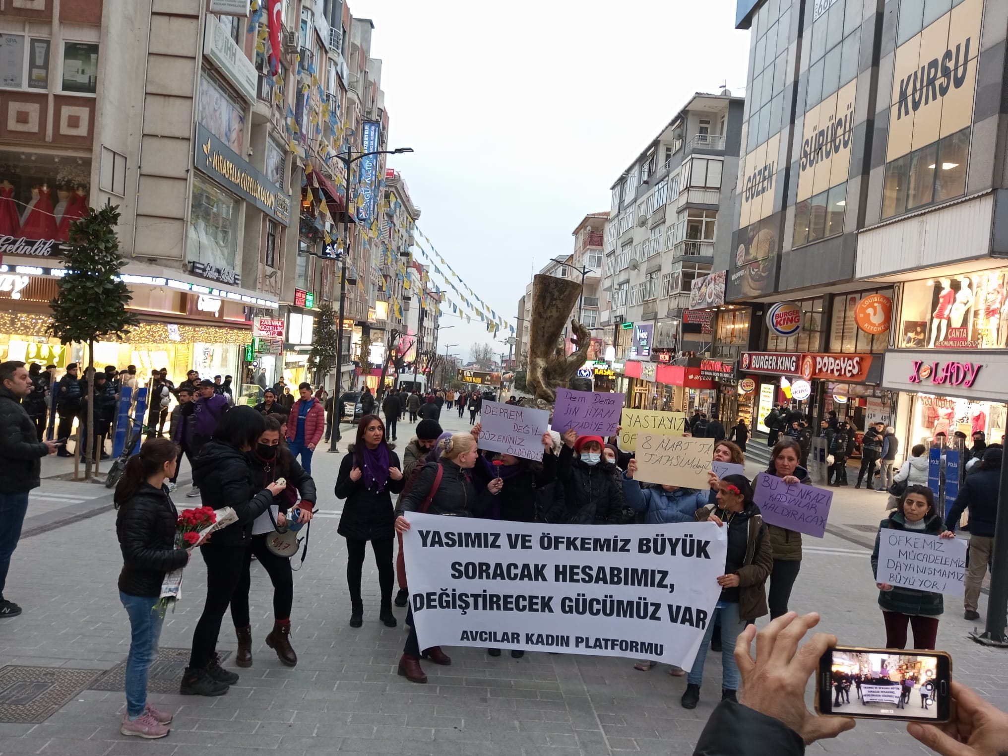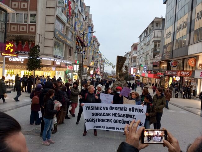 Avcılar Kadın Platformu, Avcılar Marmara Caddesi’nde “Yasımız ve öfkemiz büyük, soracak hesabımız, değiştirecek gücümüz var” diyerek bir araya geldi.