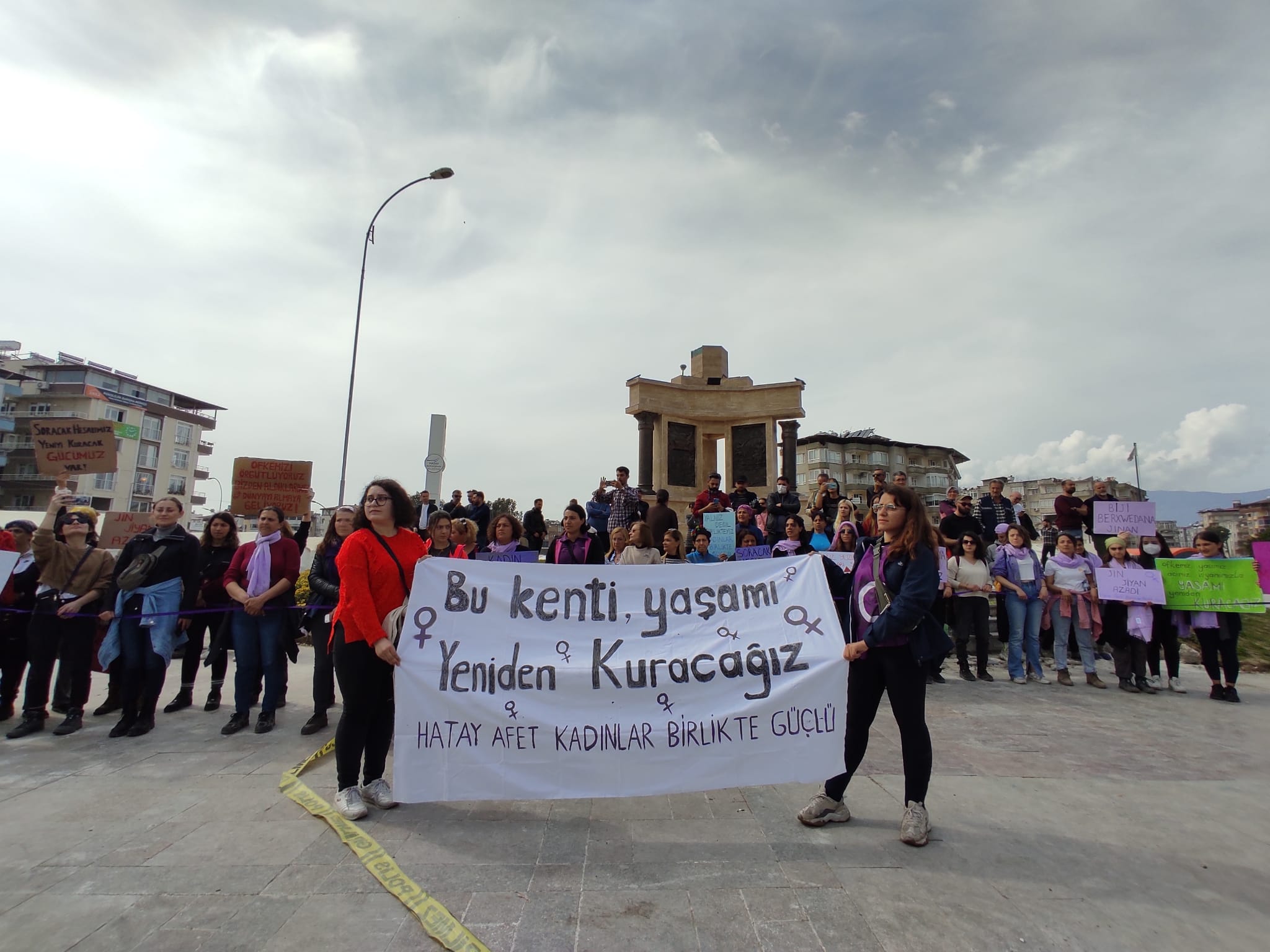 Kurdeleler kesildi, makyajlar yapıldı, dövizler hazırlandı. Kadınların evlerinin, sokaklarının, kentlerinin yıkılmasının verdiği hüzün, dayanışmanın verdiği umut, her şeye rağmen kentlerini terk etmeme inatları, sorumlulara duydukları öfke Hatay’ın çeşitli mahallelerinde bir aradaydı