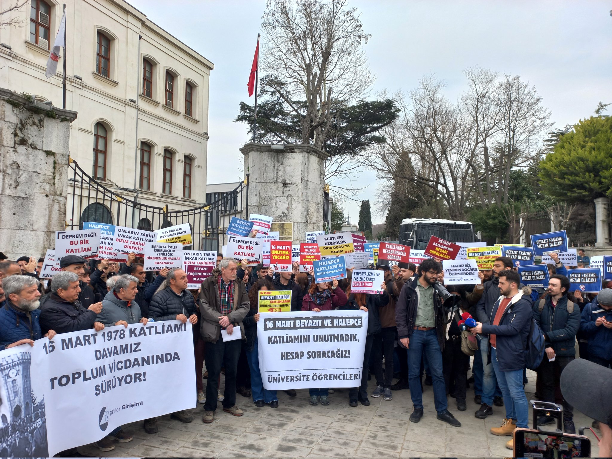 Üniversite öğrencileri olarak 16 Mart Beyazıt ve Halepçe katliamlarının yıl dönümünde yitirdiklerimizi anmak ve hesap sormak için İstanbul Üniversitesi Eczacılık Fakültesi önünde basın açıklamasında bir araya geldik:
