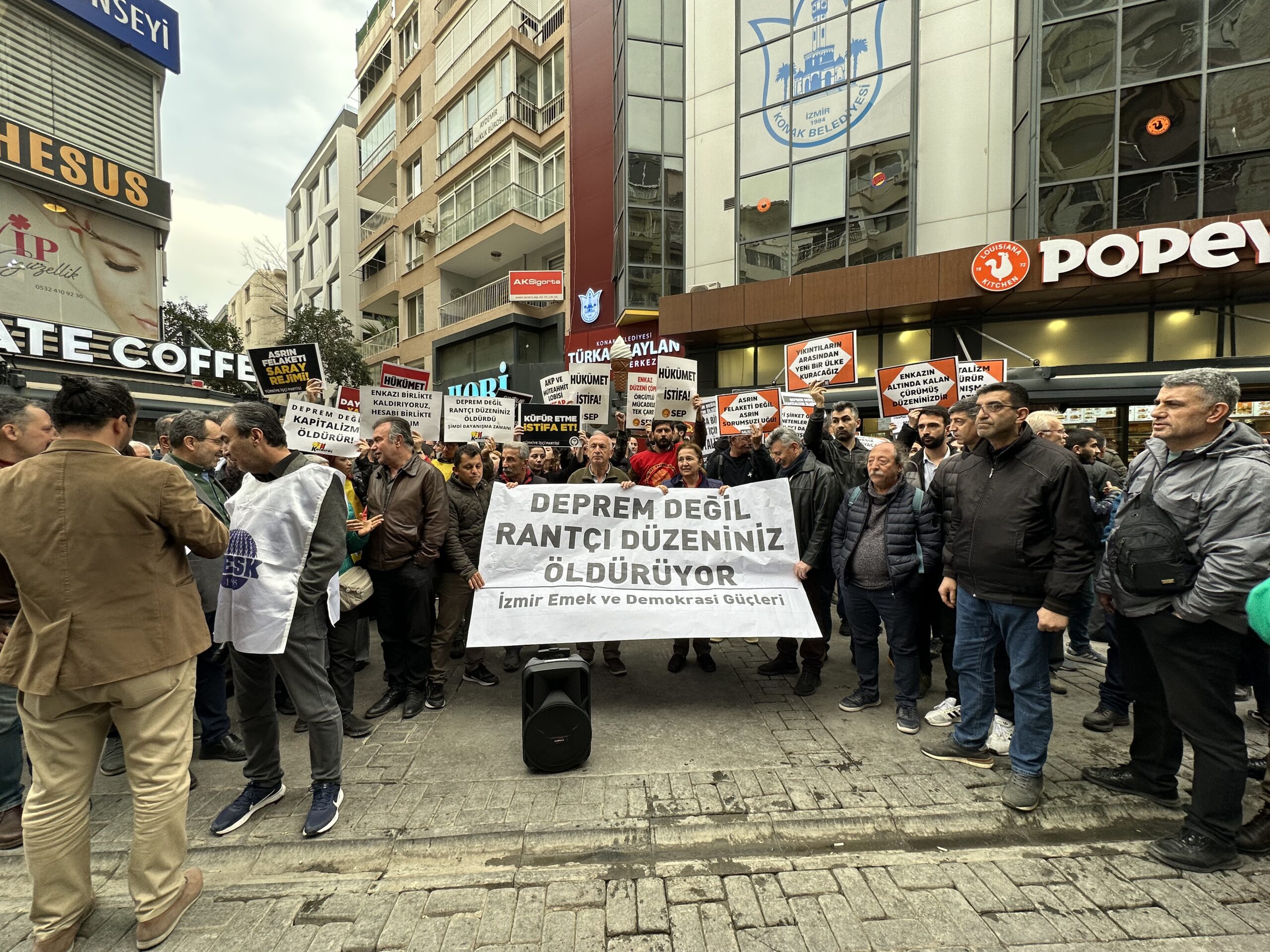 İzmir Emek ve Demokrasi Güçleri “Deprem değil, rantçı düzeniniz öldürüyor” diyerek bir araya geldi. Alsancak Türkan Saylan Kültür Merkezi önünde basın açıklaması yapan Emek ve Demokrasi Güçleri, “Bu deprem sadece yer kabuğunu kırmakla kalmadı. İktidarın açıklarını ortaya döktü, tek adam rejiminin ve neoliberal yağmacılığın neye yol açtığını tüm dünyaya gösterdi” dedi.