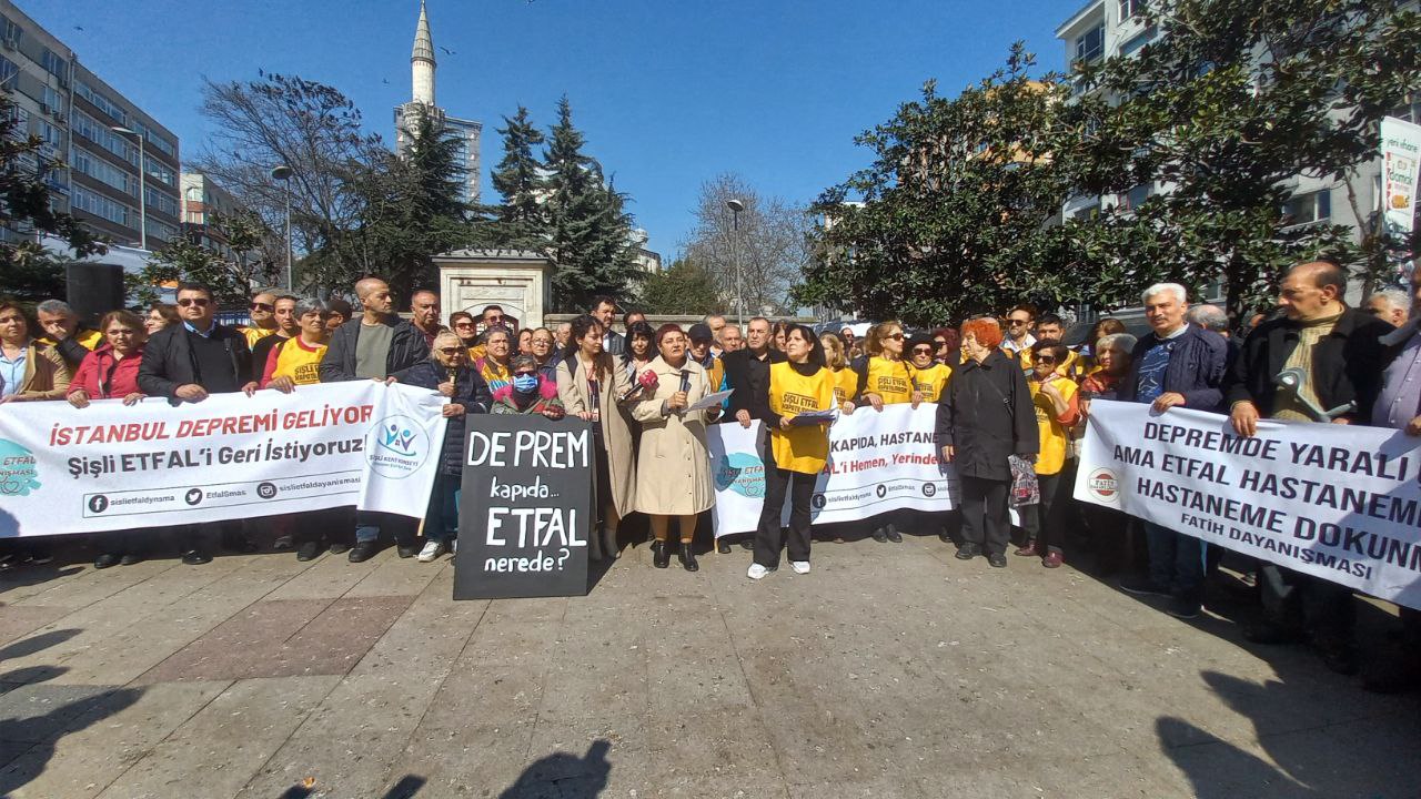 Şişli Etfal Dayanışması ve Şişli Kent Konseyinin çağrısıyla “Deprem kapıda, Etfal nerede! Depreme hastane, Şişli’ye Etfal lazım! Hastanemizi istiyoruz!” diyenler bugün (25 Mart) saat 15.00’te, Şişli Cami yanındaki Şişli Meydanı’nda halk buluşmasında bir araya geldi.