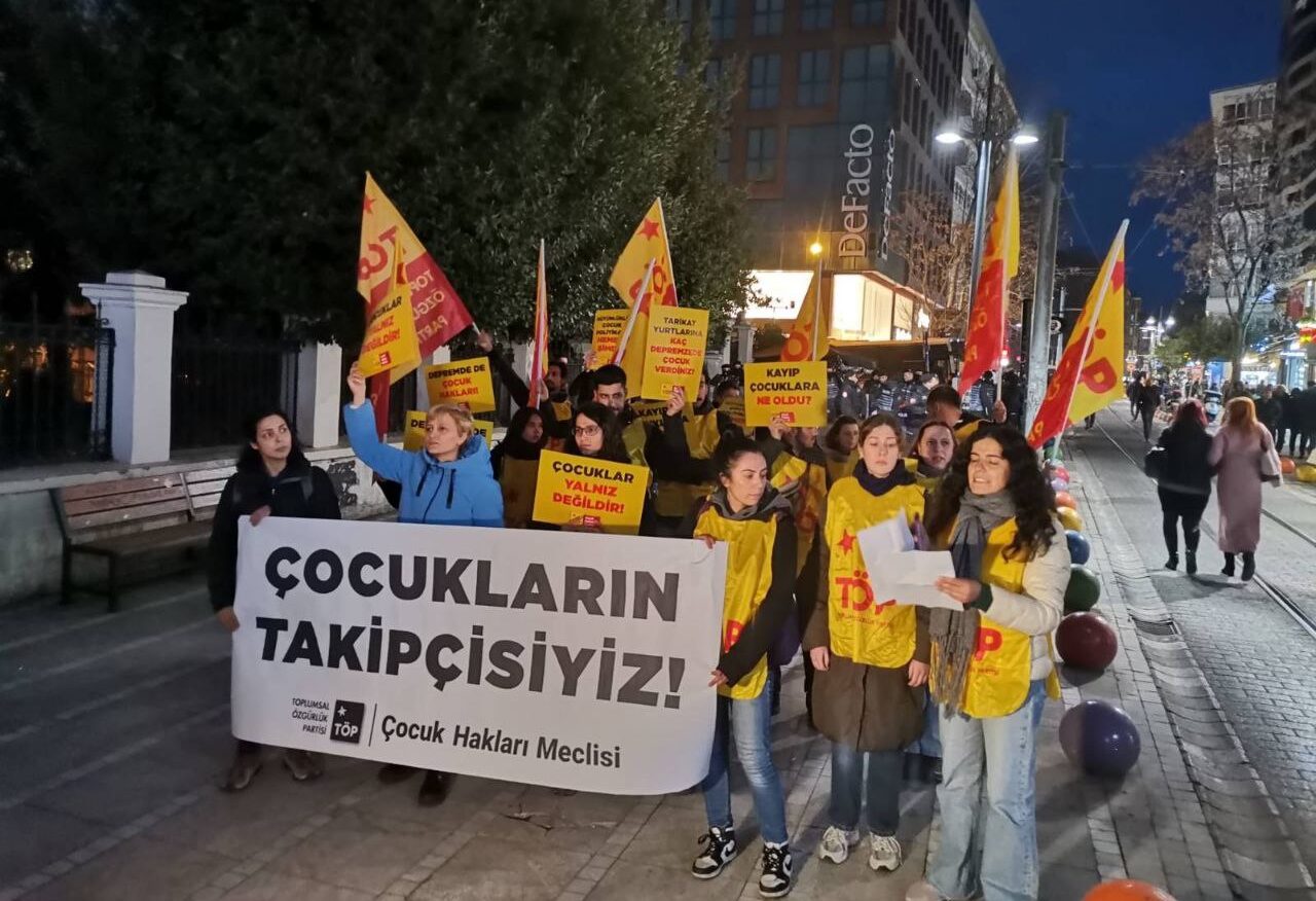 TÖP Çocuk Hakları Meclisi, depremin ardından kaybolan ve haber alınamayan çocuklarla ilgili Kadıköy Süreyya Operası önünde basın açıklaması yaptı
