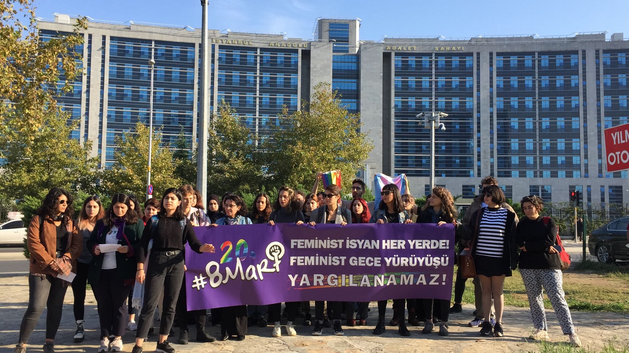 Bu yıl Feminist Gece Yürüyüşü’ne gitmek isterken Kadıköy’de vapur iskelesi önünde polis tarafından gözaltına alınan kadınların davası Kartal’da bulunan İstanbul Anadolu Adliyesi’nde görüldü. Dava 3 Kasım’a ertelendi