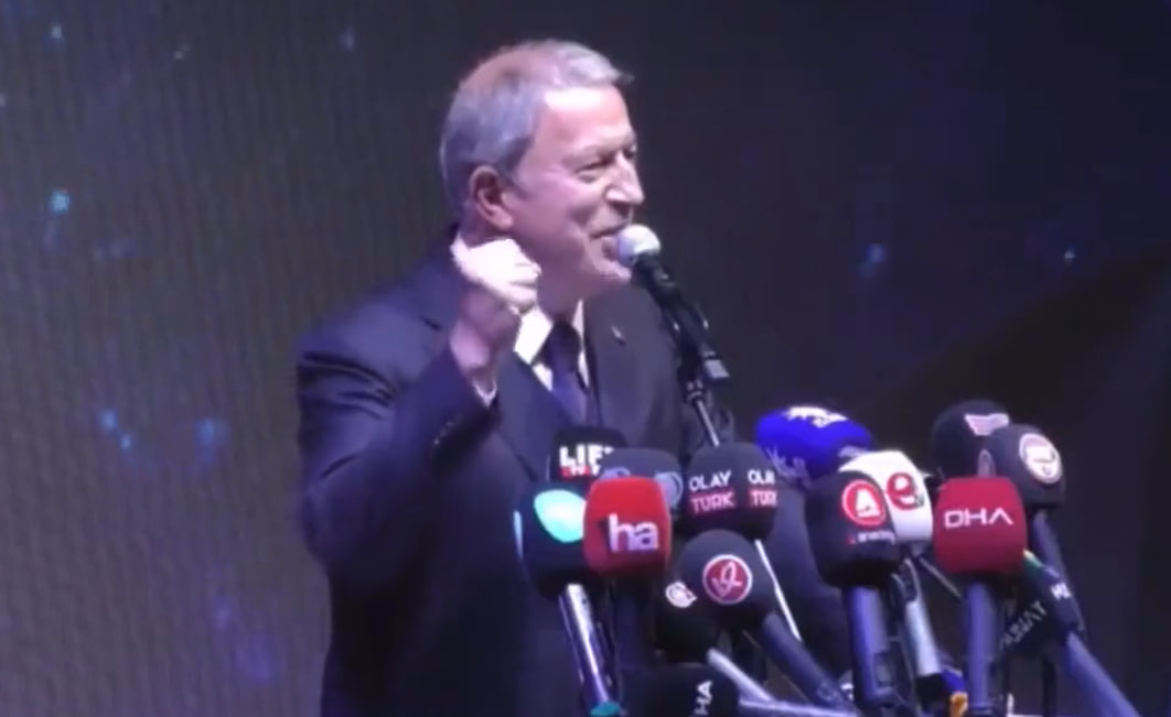 Milli Savunma Bakanı Hulusi Akar, Kadir Has Kültür ve Sanat Merkezi’nde düzenlenen aday tanıtım toplantısı sırasında salondan Vur de vuralım, öl de ölelim’ sloganları yükselince ‘Bekleyin, onun da zamanı gelecek’ diye karşılık verdi