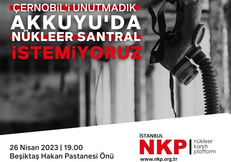 Nükleer Karşıtı Platform (NKP) 26 Nisan Çarşambasaat 19.00’da İstanbul Beşiktaş’ta bulunan Hakan Pastanesi önünde ve Mersin’de Özgecan Aslan (Barış) Meydanı’nda saat 17.30’da düzenleyecekleri eyleme çağrı yaptı