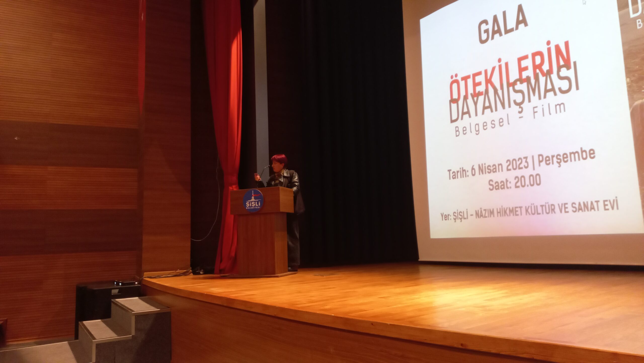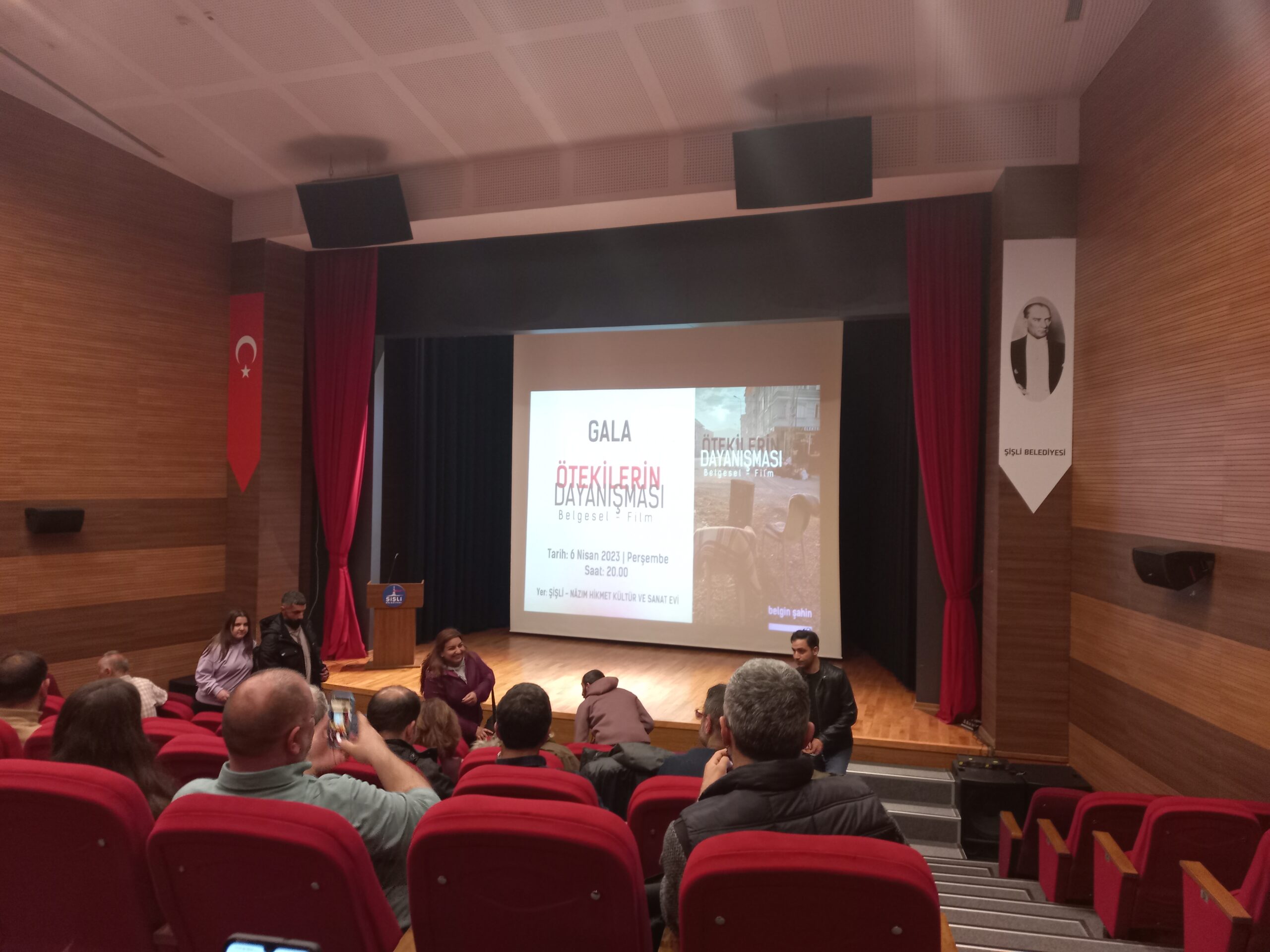 Belgin Şahin’in depremlerin ilk günlerinde Hatay ve Adıyaman’da gönüllülerle yaptığı röportajların yer aldığı belgeselin ilk gösterimi Şişli Nazım Hikmet Kültür ve Sanat Evi’nde yapıldı. Gösterimden önce açılış konuşmasını yapan Belgin Şahin, belgeseli üç bölüme ayırdığını anlattı. Şok anında gönüllülerin neler yaptığını sonrasında dayanışmanın anlamına dair sorular yönelttiğini ve son olarak nasıl devam edeceklerine dair bilgi aldığı kısımlardan oluşan belgeseli tanıtan Şahin görüntülerin kanıt niteliğinde olduğunu vurgulayarak sonraki gösterimleri deprem bölgesinde de yapmayı düşündüğünü belirtti