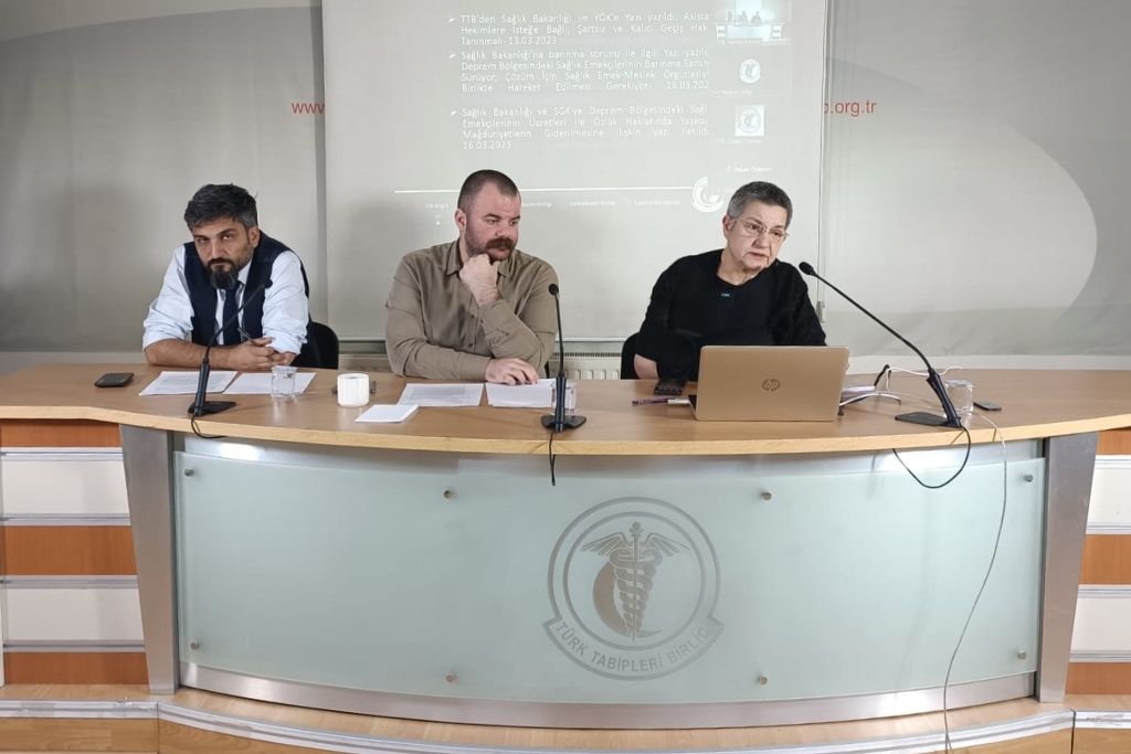 Basın toplantısının açılışını yapan TTB Merkez Konseyi Başkanı Dr. Şebnem Korur Fincancı; TTB kol ve komisyonları, il deprem koordinasyonları, Sağlık ve Sosyal Hizmet Emekçileri Sendikası (SES) ve sağlık emek-meslek örgütleri ile birlikte 6 Şubat depremlerinden bu yana geçen iki ayda hem değerlendirme hem de koruyucu sağlık hizmetleri çalışmalarını sürdürdüklerini söyledi, çalışmalarda emeği geçen herkese teşekkür etti.