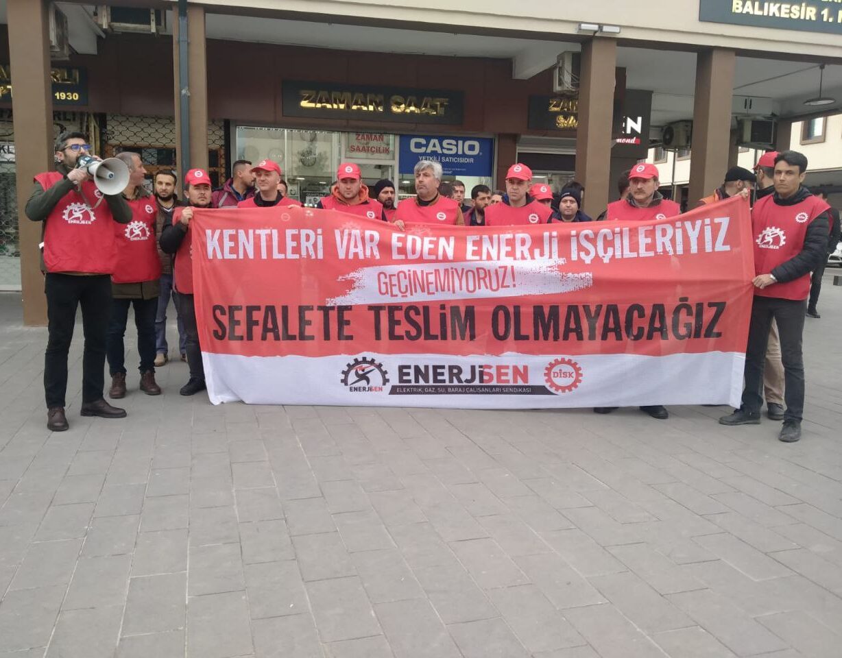 Balıkesir’de Ali Hikmet Meydanı’nda toplanan Uluğ Enerji işçileri ve DİSK/Enerji-Sen temsilcileri basın açıklaması yaptı. Açıklamada konuşan DİSK/Enerji-Sen Genel Sekreteri Emin Atsız, “Enerji işçileri kararlı, enerji işçileri yürümeye devam ediyor ve son sözü de direnen enerji işçileri söyleyecek” dedi.