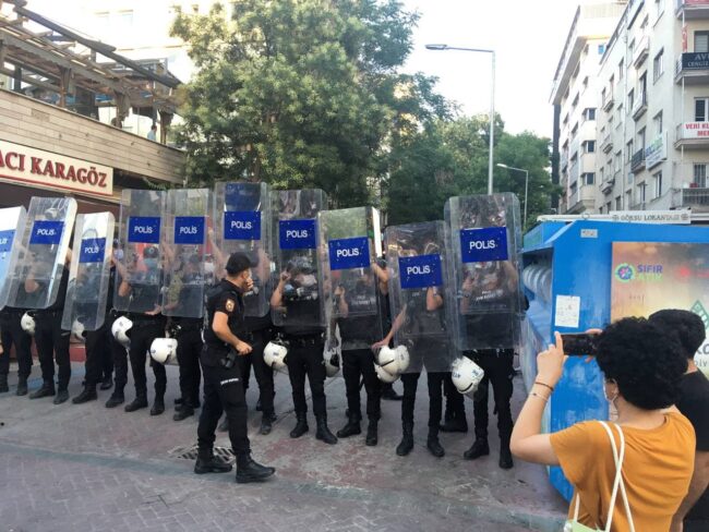 İstanbul Sözleşmesi Ankara Kampanya Grubu’nun çağrısıyla Çankaya Belediyesi önünde bir araya gelen kadınlar ve LGBTİ+’lar geçen günlerde katledildiği öğrenilen Azra Gülendam Haytaoğlu ve Emine Gökkız için ses çıkarttı. Polis, kadınları Çankaya Belediyesi önünde ablukaya aldı. Aralarında Halkevleri Genel Başkanı Nebiye Merttürk’ün de bulunduğu 15 kişinin gözaltına alındığı eylemde polis, gazetecilerle eylemciler arasına da metrelerce mesafe koyarak ve kalkanlarla barikat kurarak gazetecilerin çekim yapmasını engelledi.