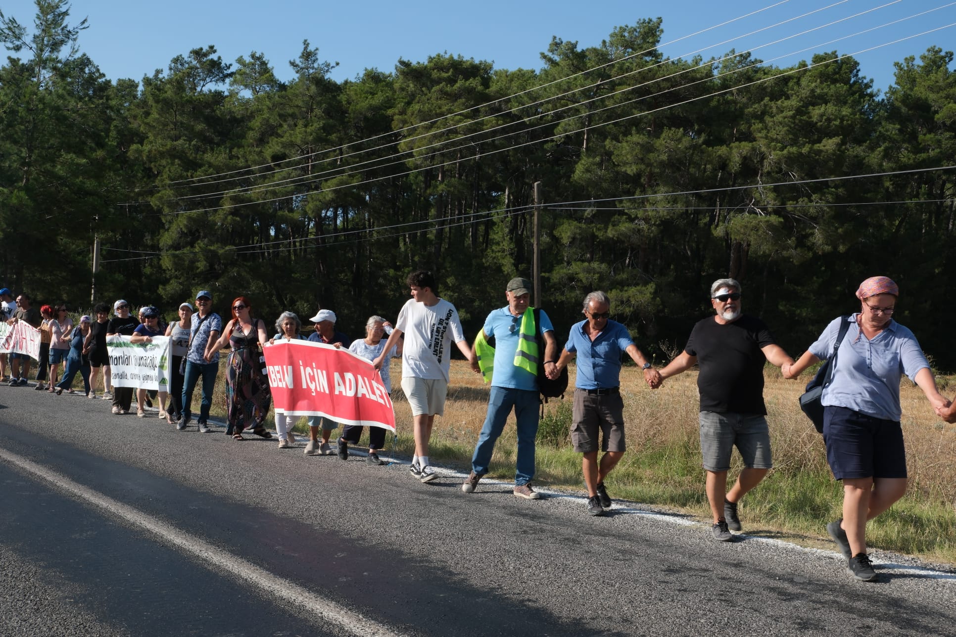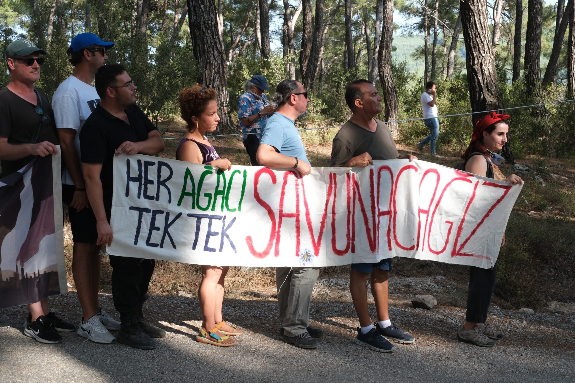 Muğla İdare Mahkemesi’ne kesimin durdurulması talebiyle giden direnişçilerin geri dönmesiyle birlikte kesim alanının önünde insan zinciri kuruldu.