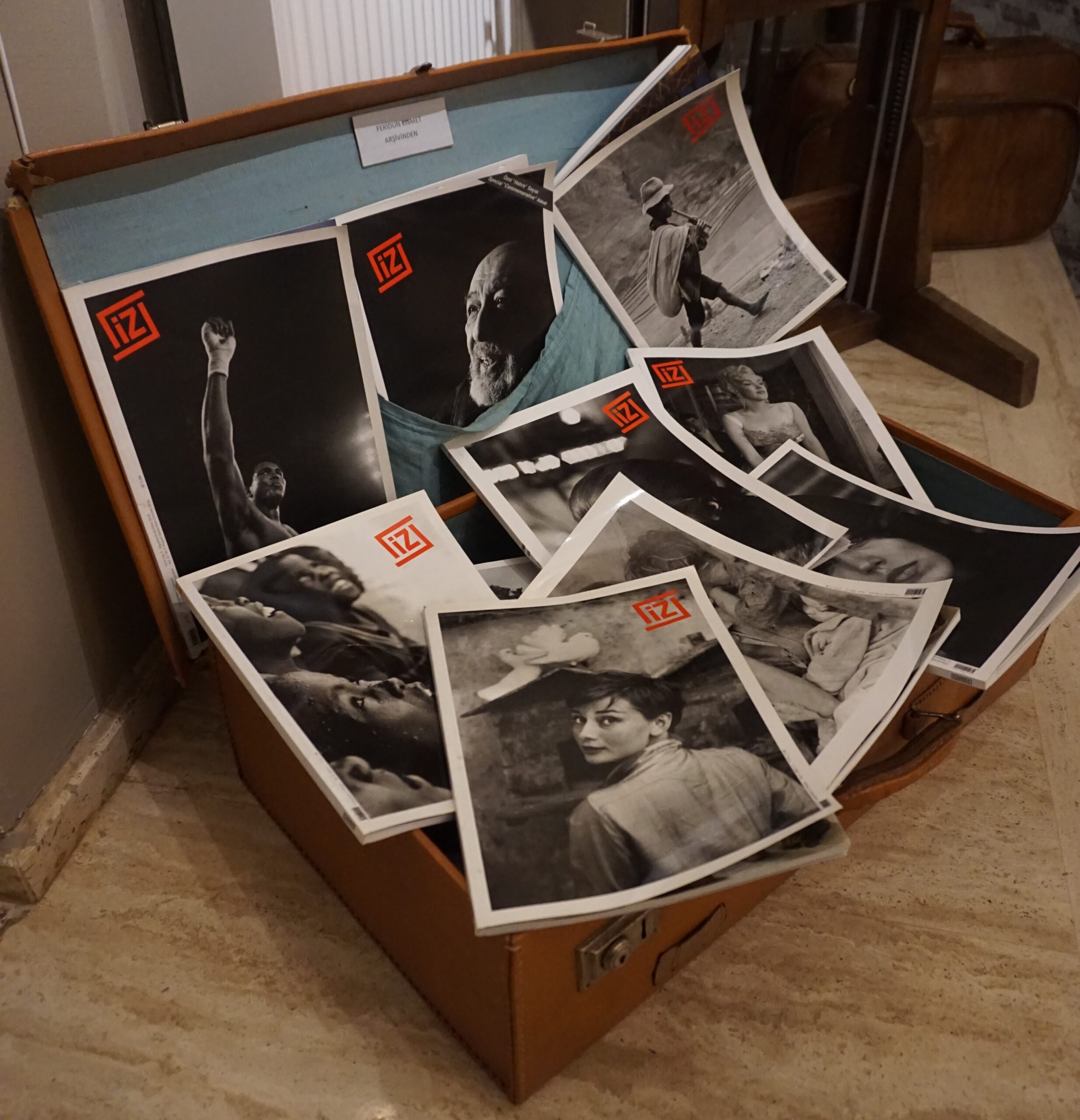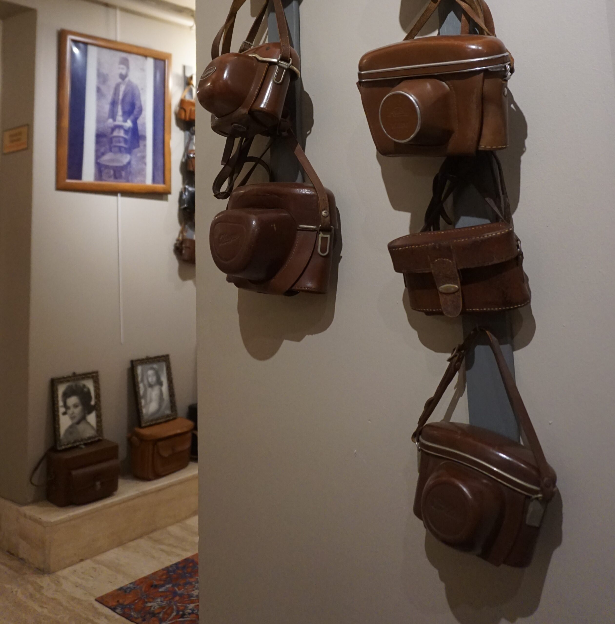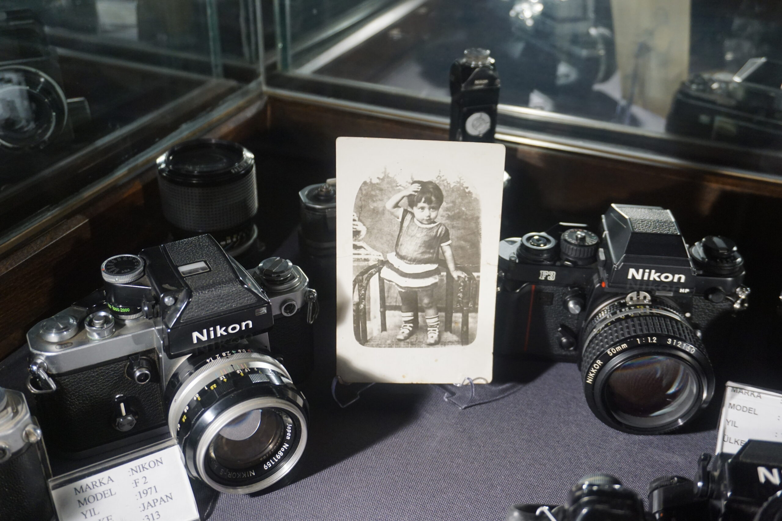 Merdivenleri çıkarken 2. Dünya Savaşı’nda çekilen fotoğraflar basamakları çıkarken bana eşlik ediyor. Üst katta üç tane fotoğraf sanatçısının resimlerinin olduğu galeriler olduğunu rehberden öğreniyorum. Bu sanatçılar; Türk Fotoğraf Tarihinde iz bırakan bir isim olan İbrahim Zaman, İlteriş Tezer ve Türkiye’deki ilk kadın fotoğraf alanındaki profesör unvanına sahip olan Prof. Dr. Güler Ertan. Bu isimlerin resimlerinin olduğu bölümlerde ise tabii ki de makineler ve makinelerin aksesuarları var. Hatta İbrahim Zaman Galerisi bölümünde Leica marka kameralar var sadece. Leica markasını da internetten araştırdığımda ise 1869 yılında Almanya ‘da mikroskop ve optik cihaz üreticisi olarak kurulmuştu. İlk 35 mm filmli Leica prototipi, 1913’te yapıldığını öğreniyorum. Ve rehberden dinlediğim kadarıyla altın kaplama Leica fotoğraf makinesini de burada görüyorum. Bu özel sınırlı üretim olan altın rengi ve kahverengi su yılanı derisi dış görünümüne sahip olan makine sadece 1000 adet üretilmiş. Leica R4 isimli makinenin seri numarası C 047 olduğunu öğreniyorum. İlteriş Tezer ve Prof. Dr. Güler Ertan Galerisi bölümünde gezerken 35 mm filmli makineler, 120 mm filmli makinelerin geri kalanını görüyorum ve fotoğrafları inceliyorum.