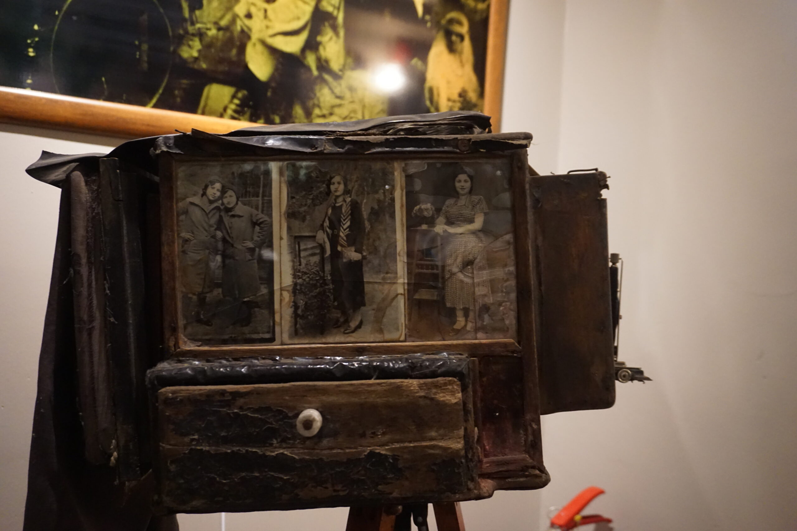 Müzeye girince ilk olarak giriş biletini alarak gezmeye başlıyorum. Rehber eşliğinde müzenin bölümlerini dinlemeye başlıyorum. Müzenin ilk odasında Rollefiex marka 120 mm filmle çalışan analog fotoğraf makinelerin bir kısmını ve çekilen fotoğrafların bir kısmını görüyorum. Ve geçmiş zamanlarda çalışan 3D fotoğraf makinelerin bir kısmını da bu bölümde görüyorum. Rolleiflex markanın tarihine baktığımda ise Alman bir optik alet markası olan “Rollei” markasının serisi olarak üretilmiş. “Rolleiflex” ismi ise Rollei’nin önde gelen orta format çift lensli refleks (TLR) fotoğraf makinesi serisine atıfta bulunmak için kullanılmış. Diğer odaya geçtiğimde ise burada katlanabilir fotoğraf makinelerini görüyorum. Hem taşınabilir, hem de taşınmaz makinalar var bu bölümde. Bu makinelerle çekilen fotoğrafların bir kısmını da burada görüyorum. İnceleyip giriş katı bitirirken balkona doğru yöneliyorum ve güzel bir anı köşesi dizayn edildiğini görüyorum. Ve bende bu anı köşesinde fotoğraf çektirerek üst kata doğru yol alıyorum.