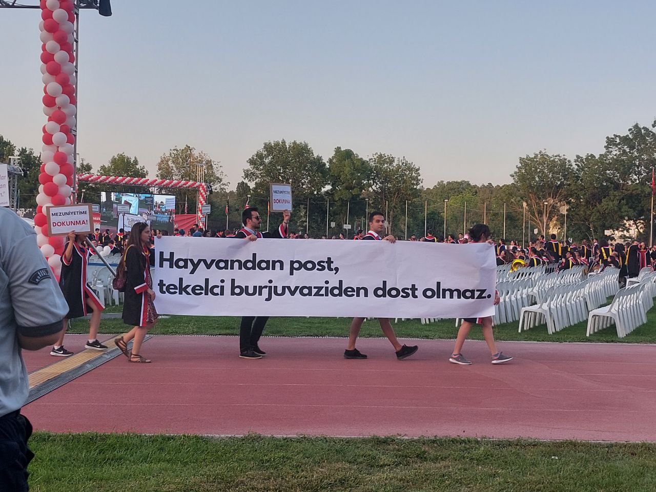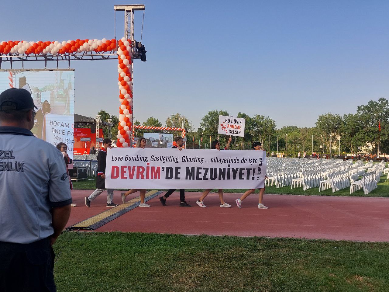 Bölüm Başkanlıklarından kendileri adına çıkarılan davetiyelerin büyük oranda alınmaması bu uygulamayı fiilen boşa çıkardı. Öğrenciler kendi kampüslerine davetiyeyle gelmeyi reddettiklerini ifade ederken “Hayırdır Verşan, düğün mü var, davetiye göndermişsin” pankartıyla törende de bu hamleye cevap verdi.