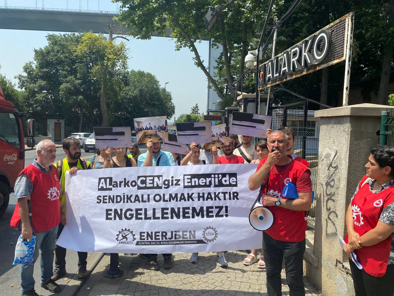 Alarko Holding ve Cengiz Holding ortaklığındaki Konya ve civar illerde elektrik dağıtımını yapan Alcen Enerji’de patron ve Hak-İş’e bağlı Enerji-İş, işçilerin DİSK/Enerji-Sen’de örgütlenmemesi için seferber oldu. DİSK/Enerji-Sen de bu sarı sendika-patron işbirliğine karşı İstanbul’da Alarko Holding önünde eylem yaptı. Eyleme Halkevleri, Umut-Sen, İnşaat-İş, Öğrenci Kolektifleri ve Üniversiteli Feminist Kolektif temsilcileri de destek verdi.