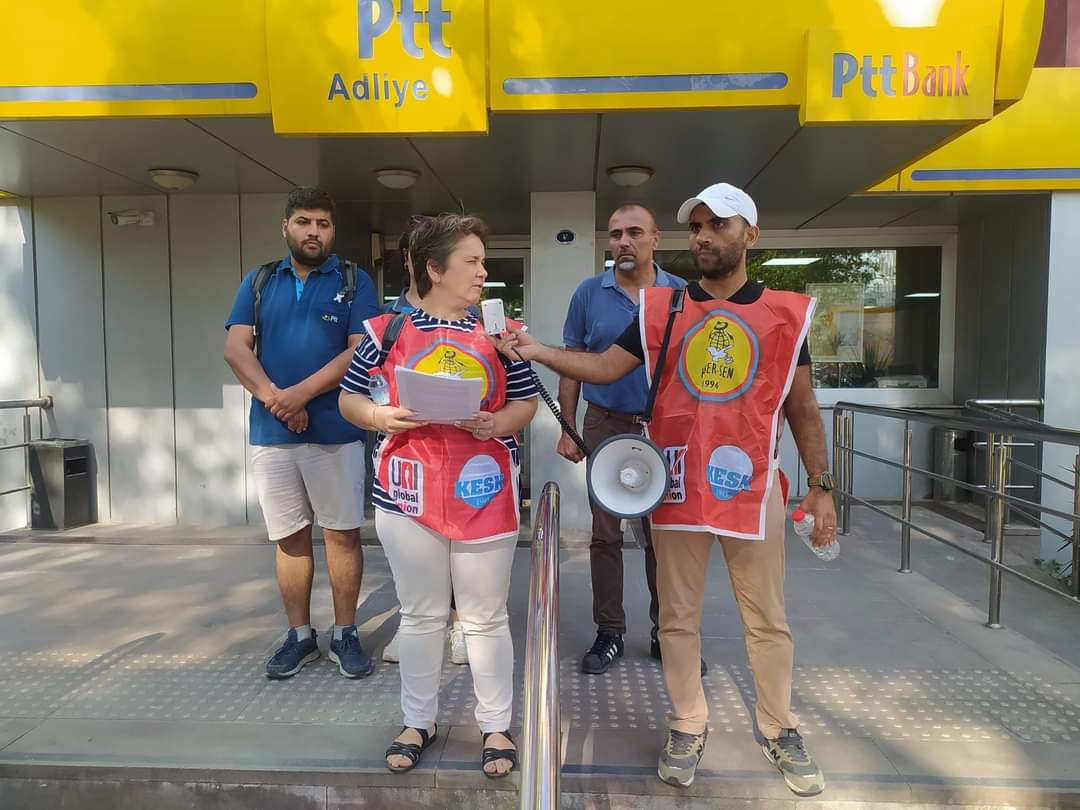 Açıklamada konuşan Haber Sen 6 Nolu Şube Kadın Sekreteri Derya Balseven, performans sayıları ve iş baskısının son bulmasını istedi. Kavurucu sıcakların dünya gündemi olduğu bir süreçte PTT emekçilerinin zor koşullarda çalıştığını belirten Balseven, “Ama sırtına yükle bakalım yükünü haydi şimdi vur kendini yollara sana bir şey olmaz PTT’ci kardeşim. Bu kurumun yaşattığı zulmü yıllardır yazdık, anlattık, duymuyorlar. Neden? Çünkü PTT para kazansın kâr etsin diye. Sen kardeşim, sırtına yükleneni canın pahasına teslim ediyorsun ya bundan çuvalla para kazananlar var” dedi.