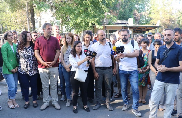 Gazetecilerin tahliyesinin ardından Diyarbakır Adliyesi önünde yapılan açıklamada, 13 aylık hukuksuzluğun son bulduğu belirtildi