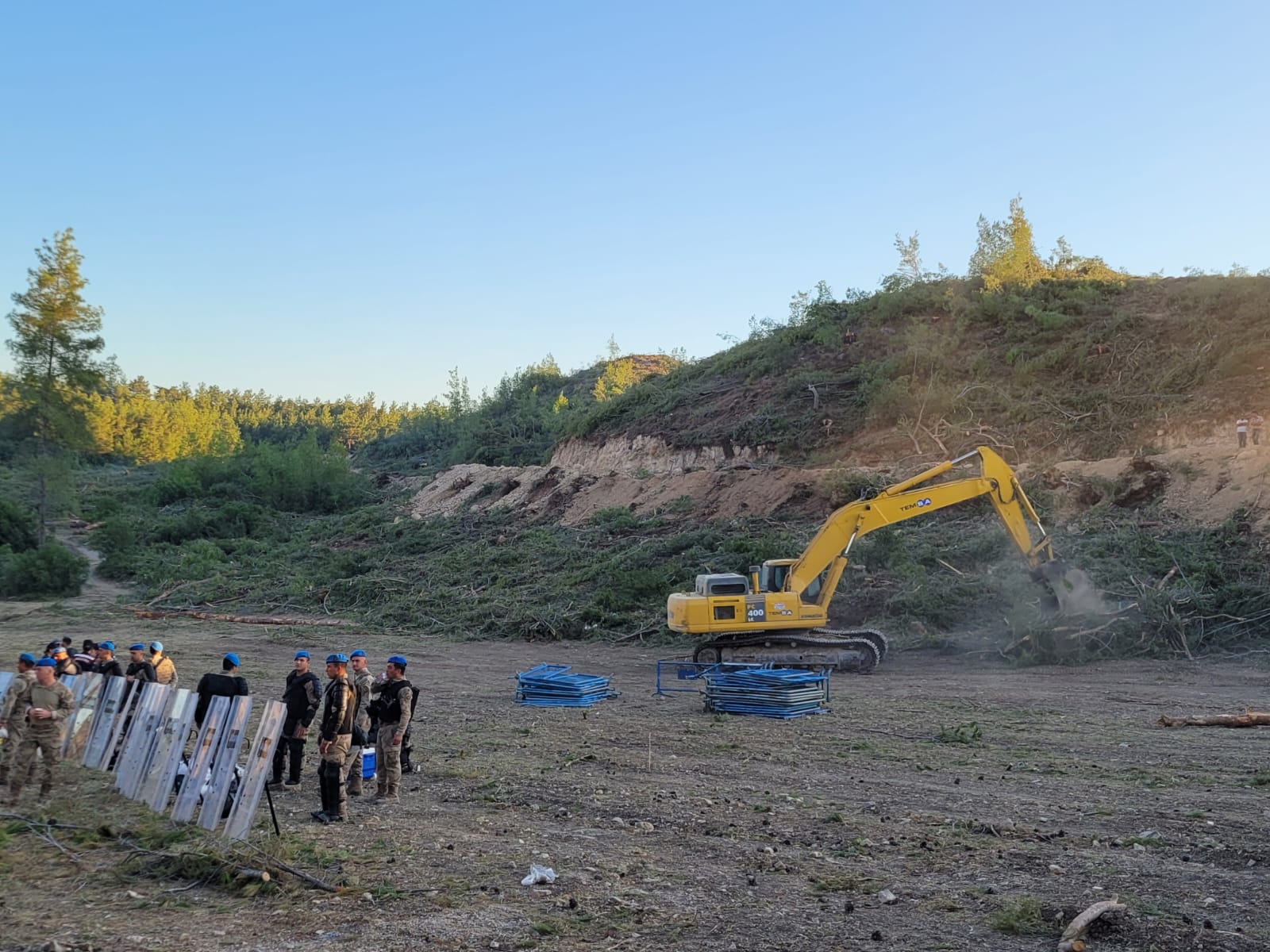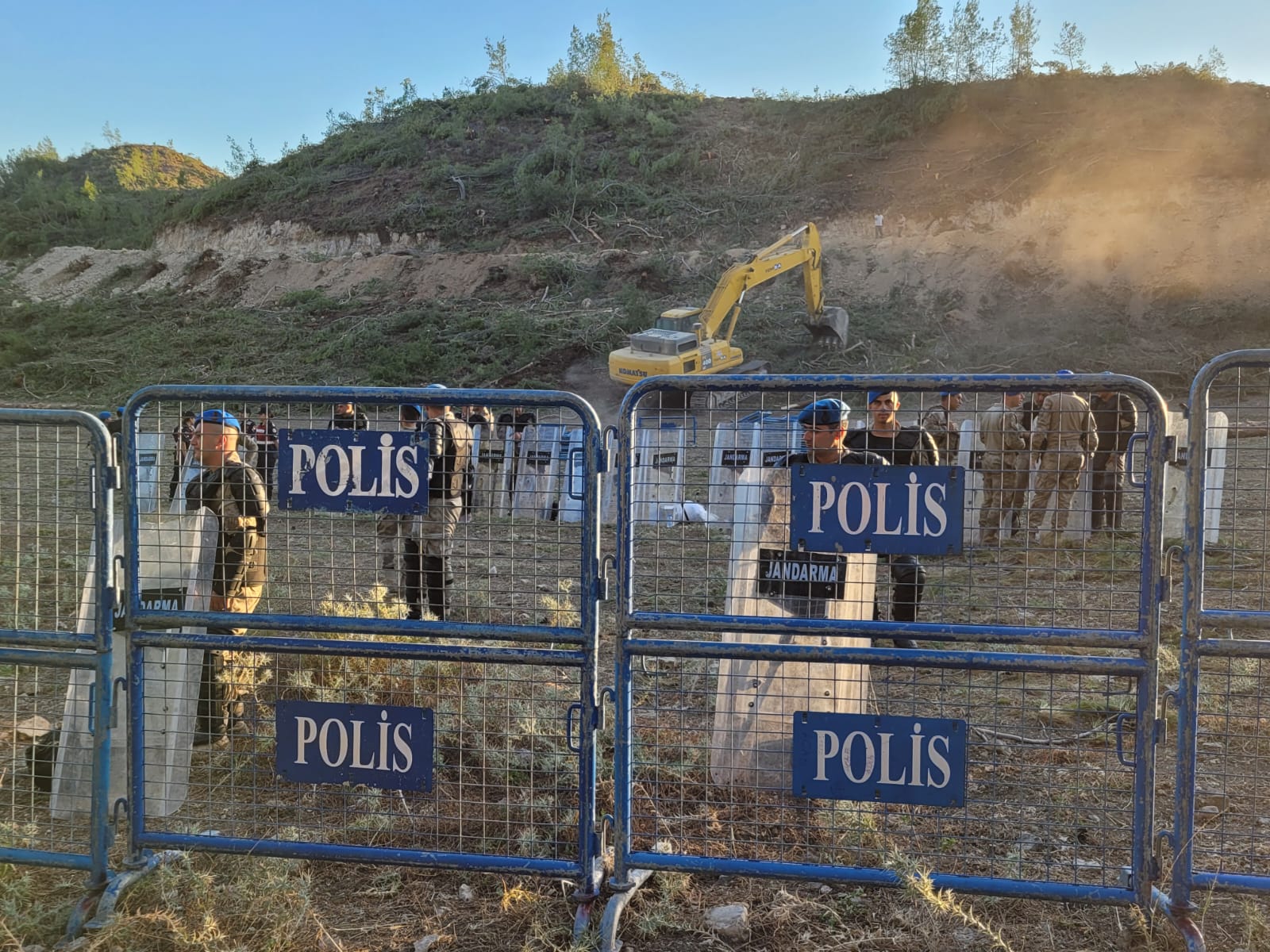 Direniş alanının bulunduğu geniş bir alan polis bariyerleriyle çevrelendi. Direnişçiler ve köylüler, polis bariyerlerinin konulmasının gece nöbetini hedef alabileceğini söylüyor.