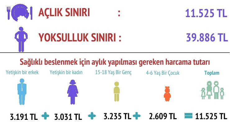 Birleşik Metal-İş Sınıf Araştırmaları Merkezi’nin (BİSAM) Temmuz 2023 raporuna göre açlık sınırı 11 bin 525 TL, yoksulluk sınırı 39 bin 886 TL